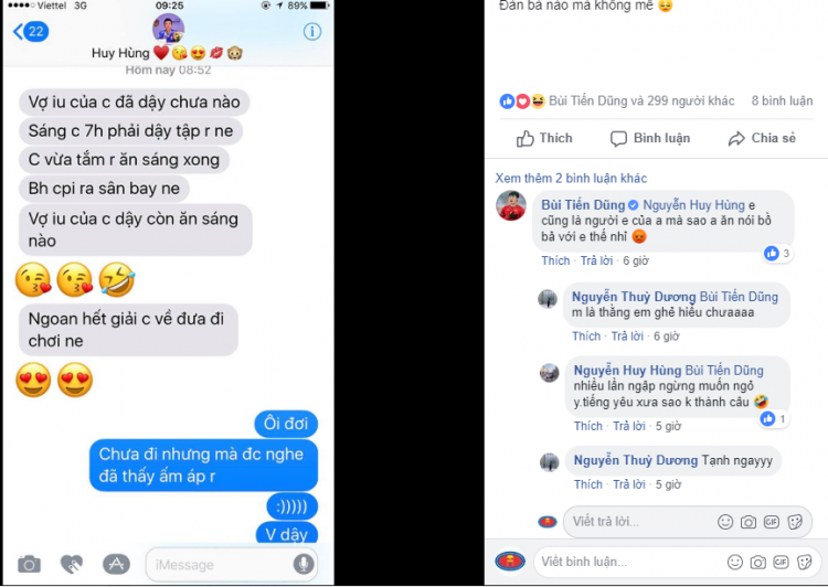 Ngay cả trong dòng trạng thái của người yêu Huy Hùng, Tiến Dũng vẫn không ngại thả thính và tán tỉnh tiền vệ Quảng Nam vô cùng lầy lội.