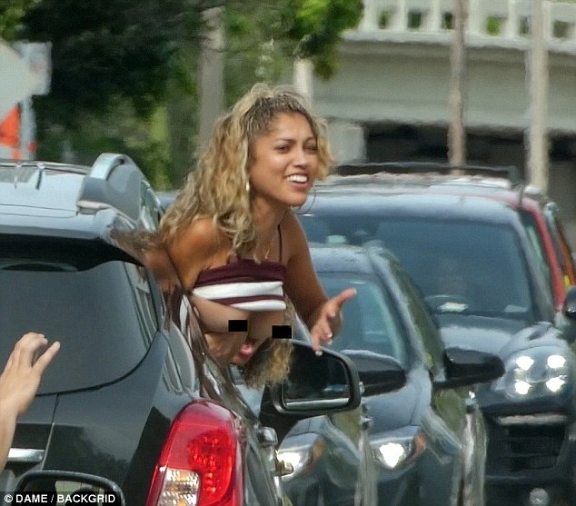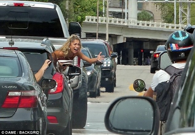 Quá phấn khích vì được gặp thần tượng, cô gái này đã hạ kính xe, thò nửa người khỏi xe, cởi phăng áo, khoe trọn vòng 1 đẫy đà hướng về phía David Beckham với vẻ mặt vô cùng hạnh phúc.