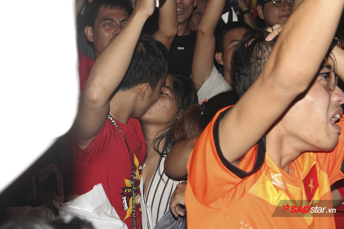 Trong khi đó, một cặp tình nhân hôn nhau đắm đuối vì hạnh phúc. Một thứ cảm xúc chỉ có bóng đá mới mang lại được.
