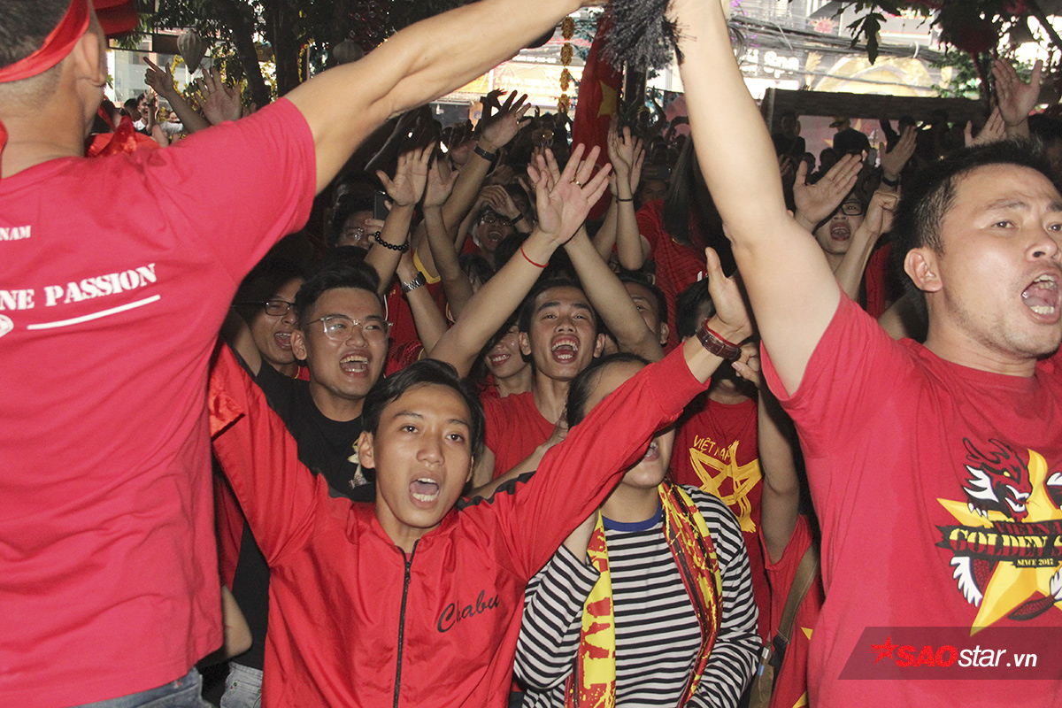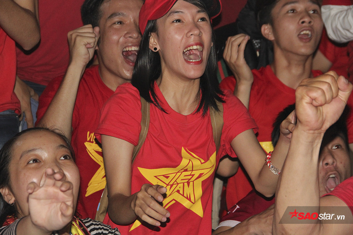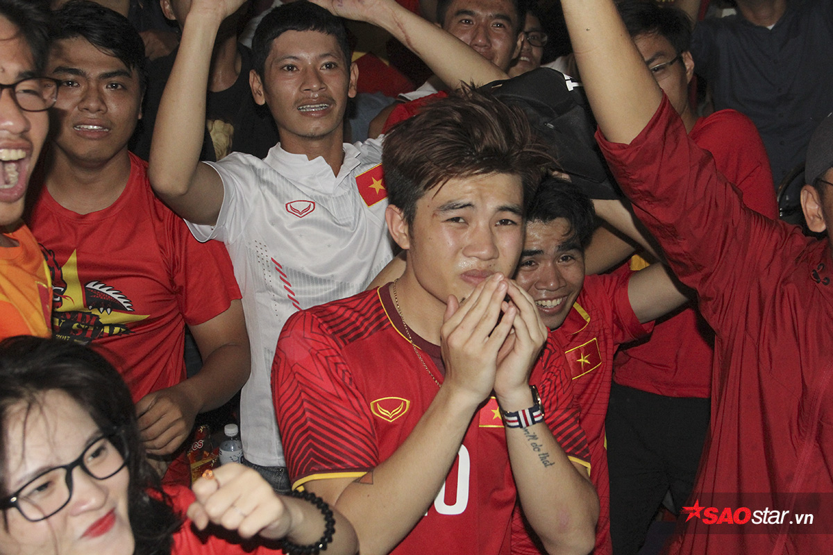 Sau khi bị dẫn trước vì quả 11 mét đầy oan ức, các cầu thủ U23 Việt Nam gỡ hòa ở phút 69 nhờ công của Quang Hải. Tại TP.HCM, hàng trăm fan Việt vỡ òa cảm xúc.