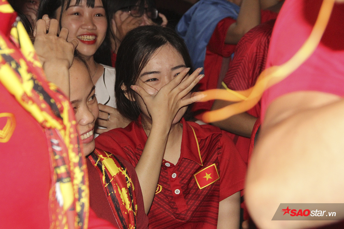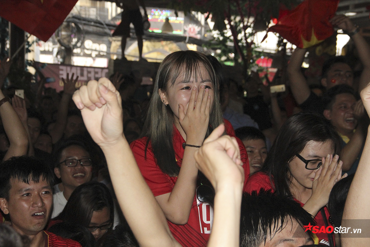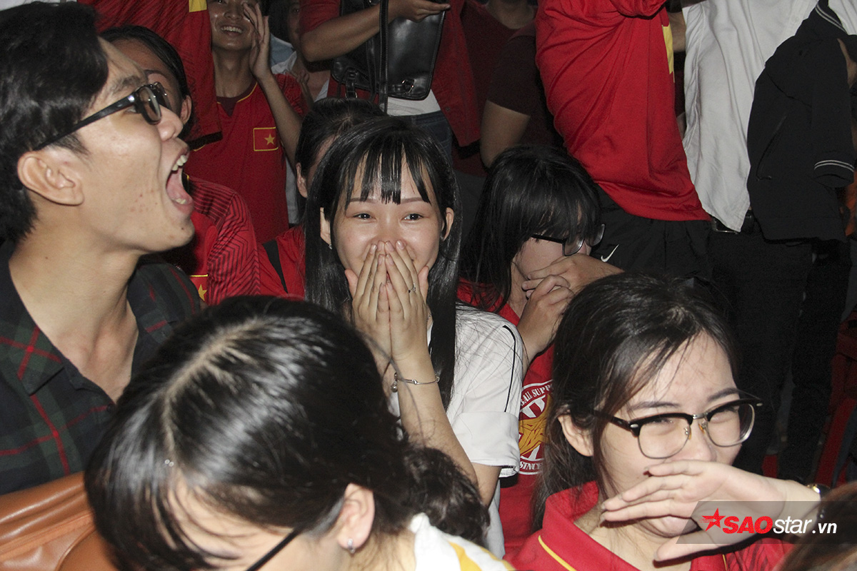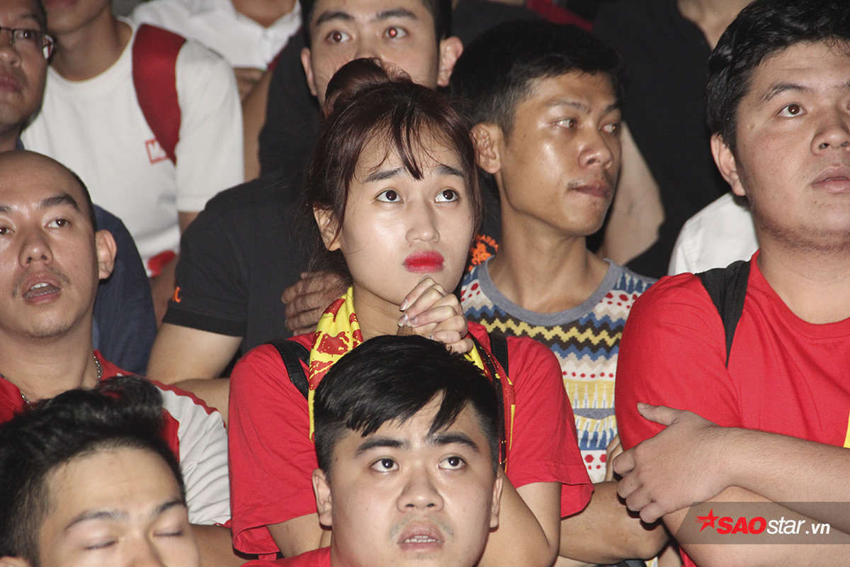 Những giây phút hồi hợp vì chờ đợi, lo lắng đã khiến một fan nữ xinh xắn trào nước mắt khi đội nhà có bàn san hòa cách biệt.