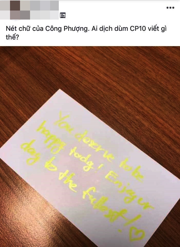 Một fan hâm mộ đăng trong một diễn đàn dành cho những người yêu CLB HAGL với khẳng định là nét chữ của Công Phượng. Tuy nhiên, dòng chữ thứ 2 khó dịch vì bị mờ nên fan Công Phượng đăng tải tìm người dịch hộ. Ảnh chụp màn hình