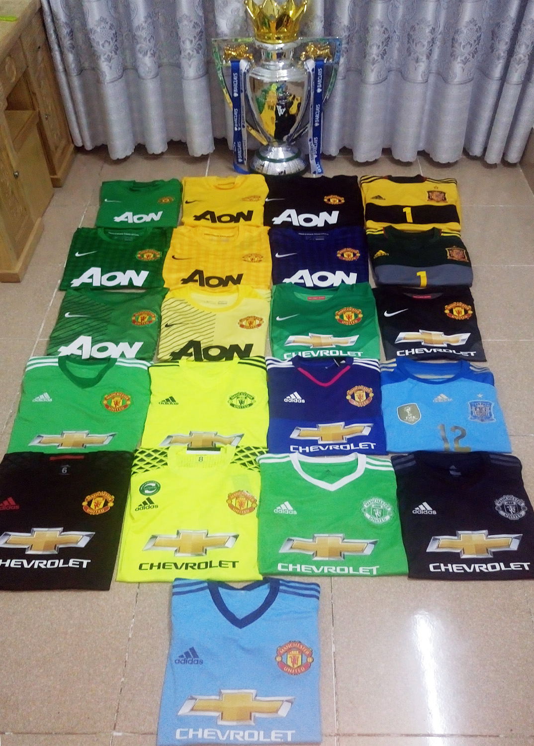 Không chỉ sưu tập áo thi đấu chính thức, áo đấu thứ 2, thứ 3 mà cả các chiếc áo tập luyện của De Gea cũng được Trung tìm kiếm và cho vào bộ sưu tập. Ngoài ra, những chiếc áo đấu tại tuyển Tây Ban Nha của De Gea cũng được chàng trai săn tìm.