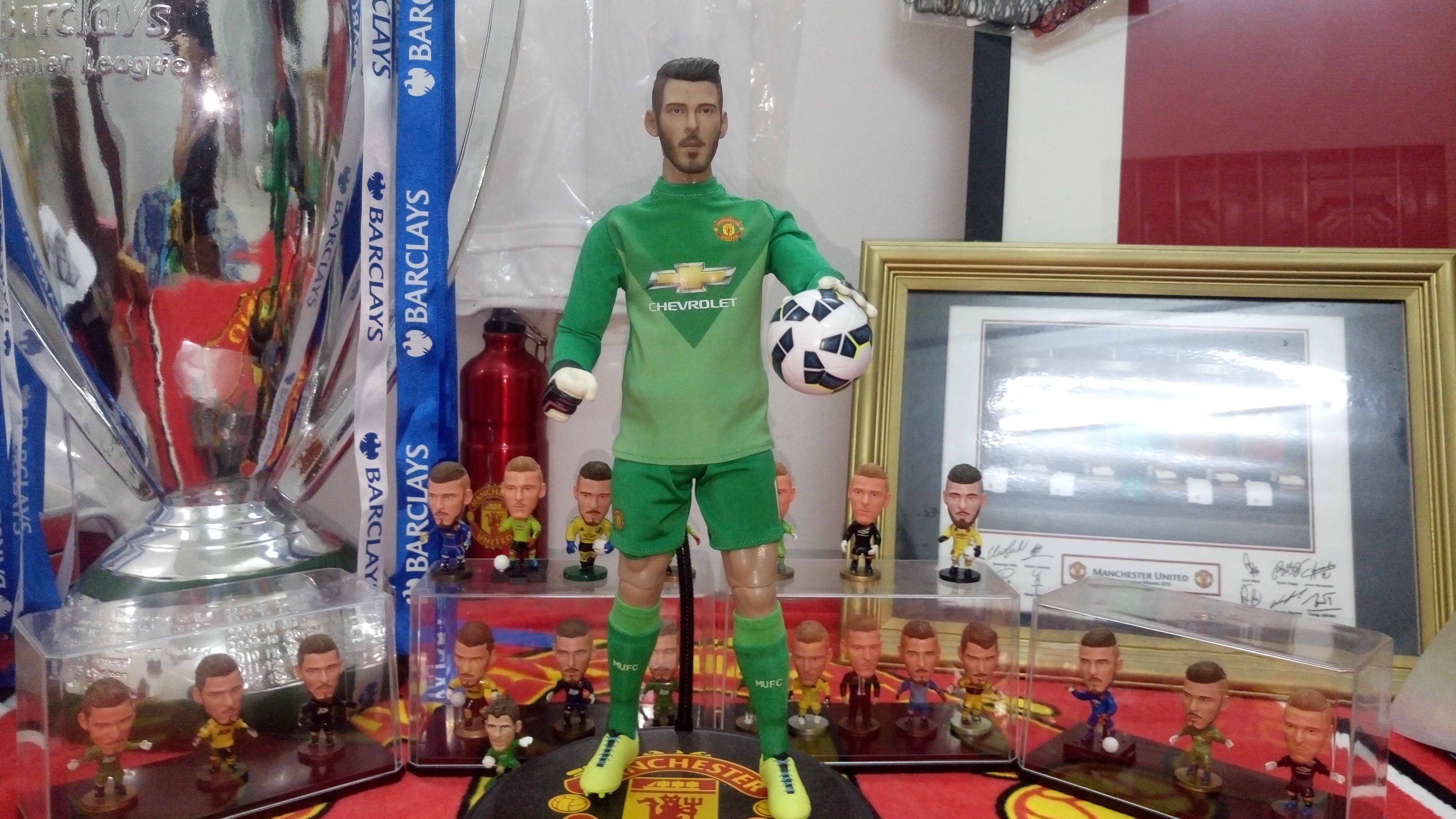 : Tượng mô phỏng về De Gea trong bộ sưu tập của Trung. Tượng này có thể cử động tay chân, có quần áo, giầy, bao tay riêng và có kích thước thu nhỏ theo kích thước của thủ thành người Tây Ban Nha