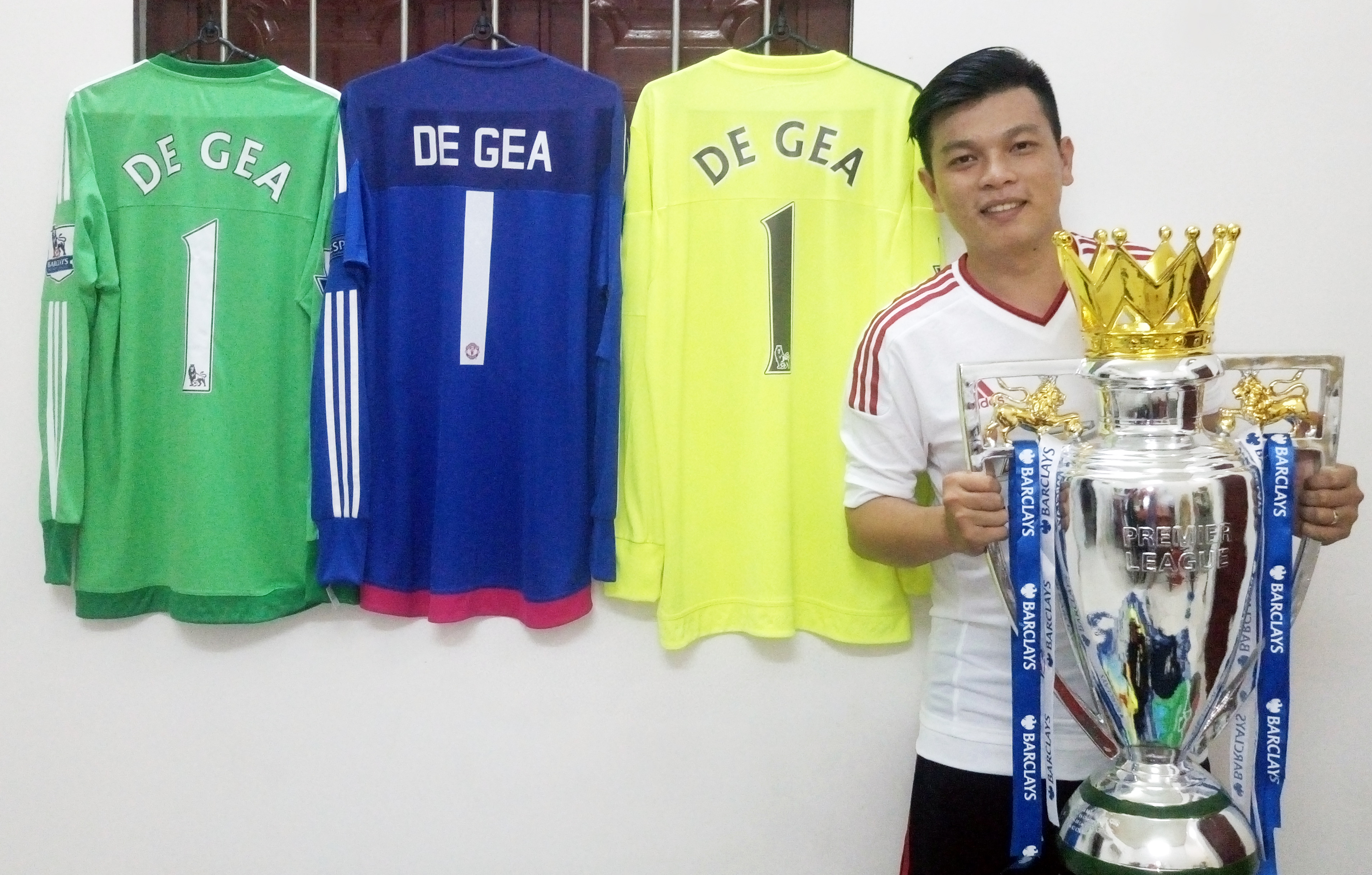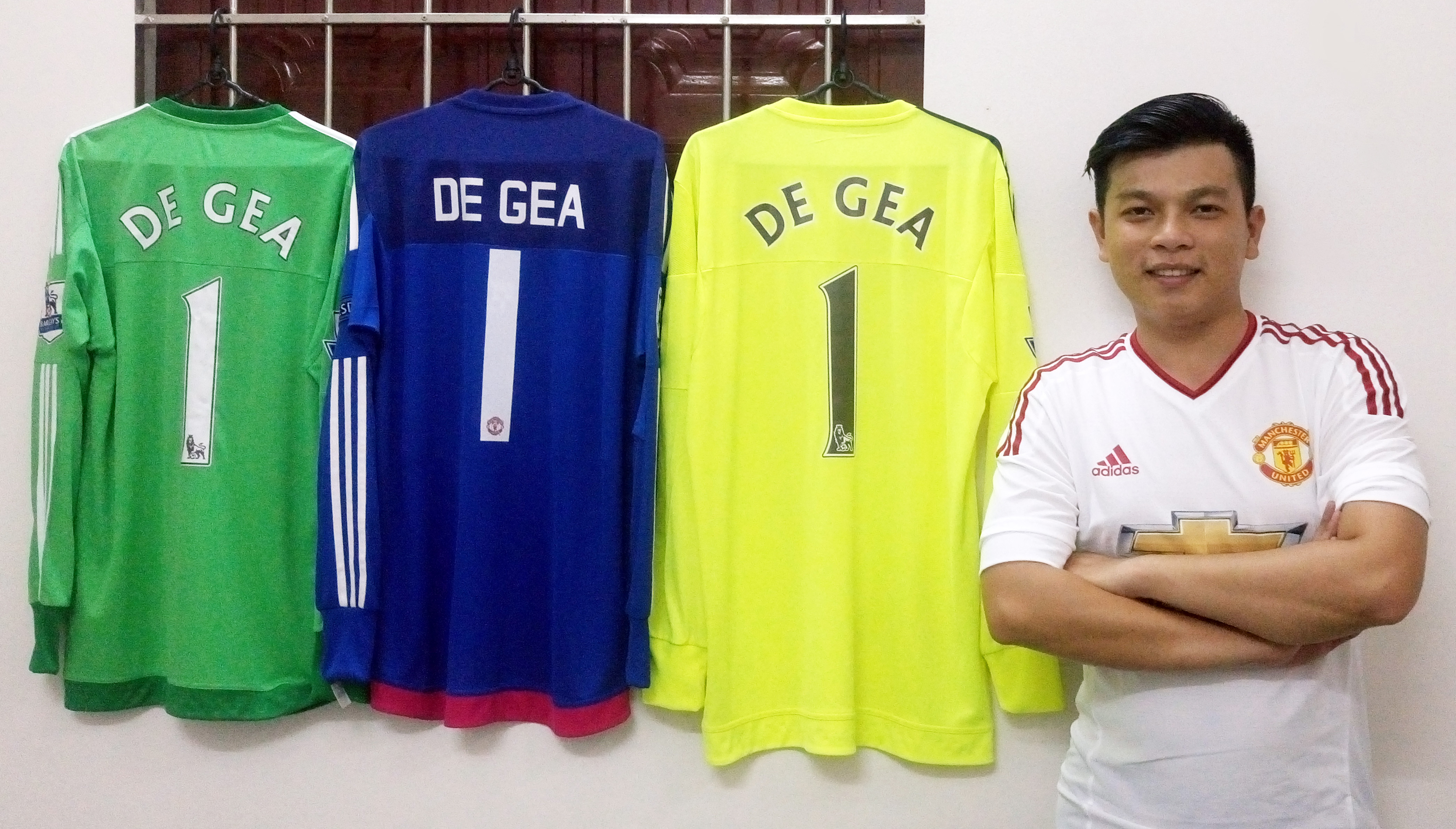 Là một fan của Man United, bạn Trần Chí Trung (24 tuổi, quê Kiên Giang) nhanh chóng bị chàng thủ môn này chinh phục. Từ lòng yêu thích, Trung đã tìm kiếm và sưu tập cho mình những chiếc áo mà thủ thành số 1 của MU mặc trong mỗi mùa giải từ khi “kết duyên” với MU.