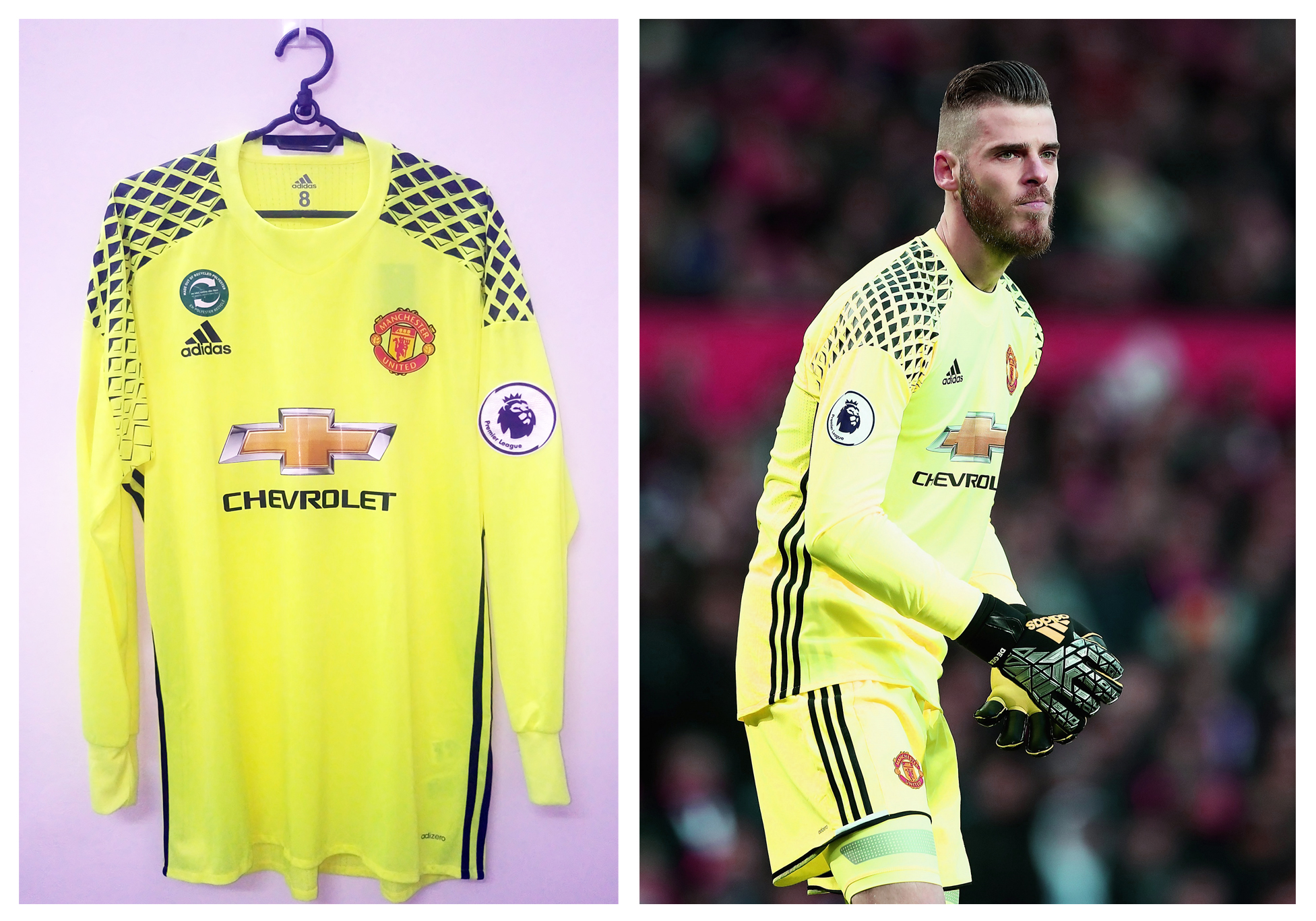 Chiếc áo De Gea mặc thi đấu trong mùa giải 2016/2017. Đây là một trong những chiếc áo hiếm, khó mua được vì mẫu áo này không được nhà sản xuất bán đại tra cho fan hâm mộ.