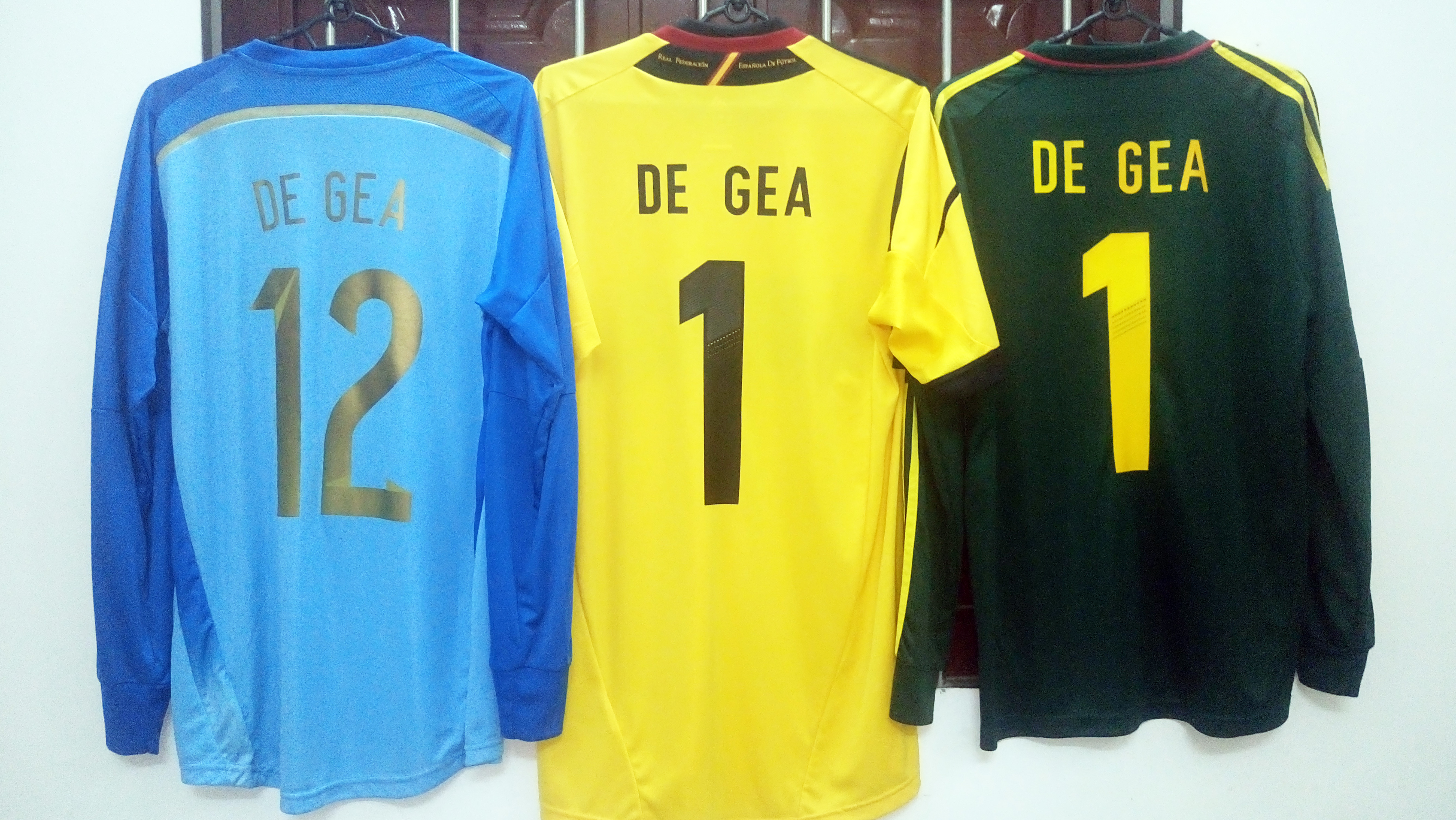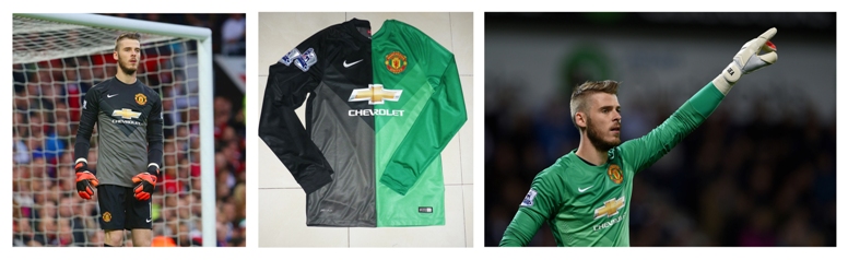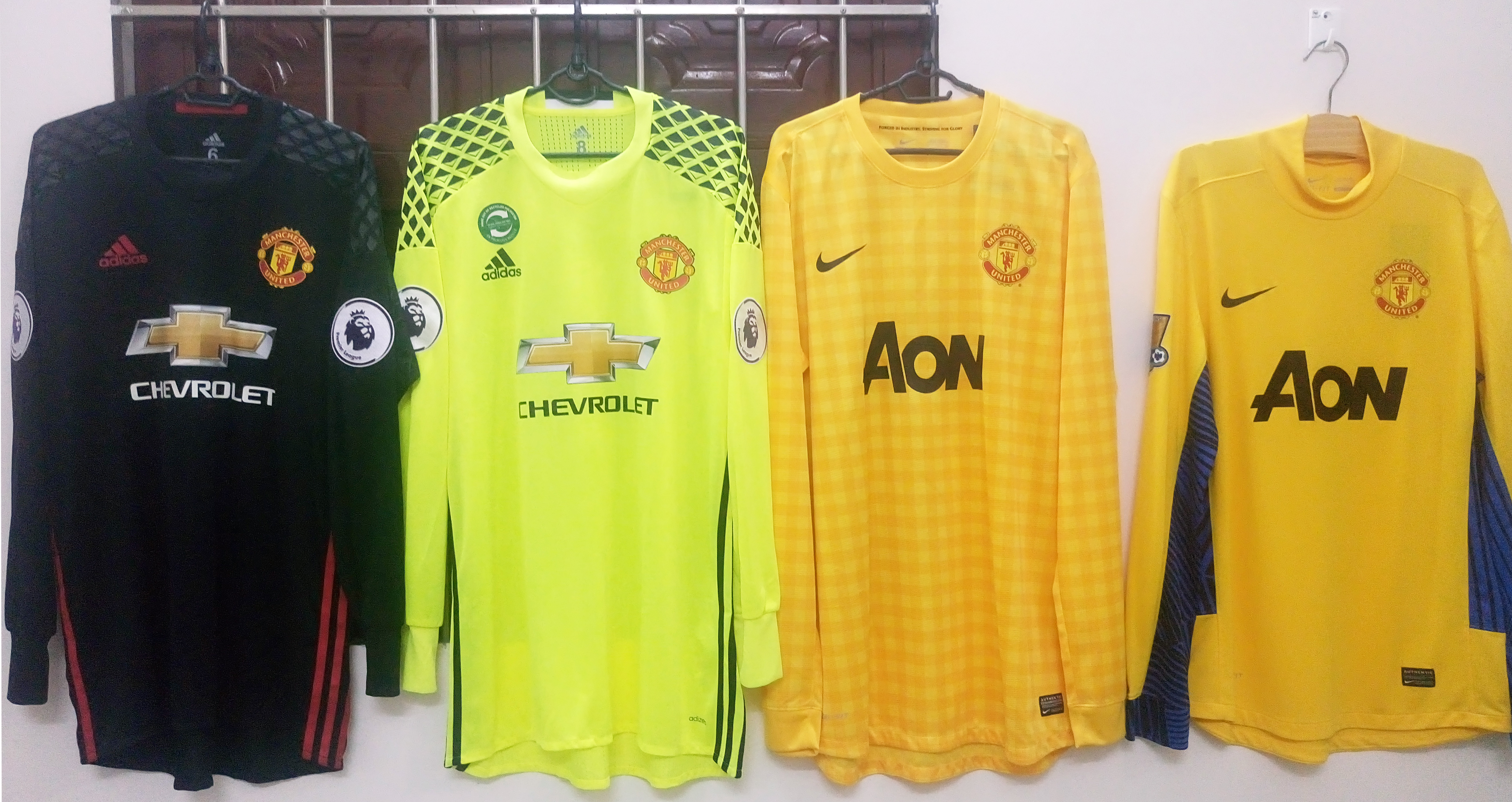 Hai áo thi đấu của De Gea trong mùa giải 2014/2015. Hai chiếc áo này Trung phải nhờ người quen mua tại Indonesia.