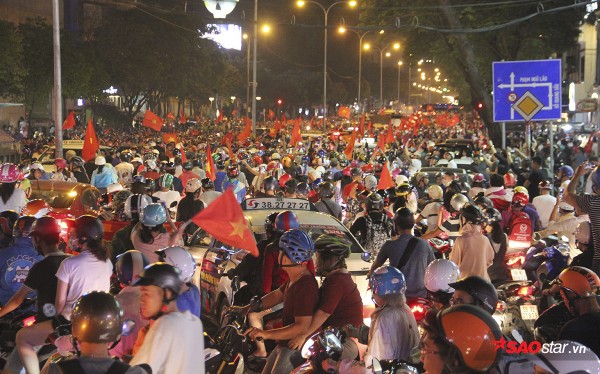 NHM Việt Nam đổ xô ra đường mừng chiến tích lịch sử của các chàng trai áo đỏ.