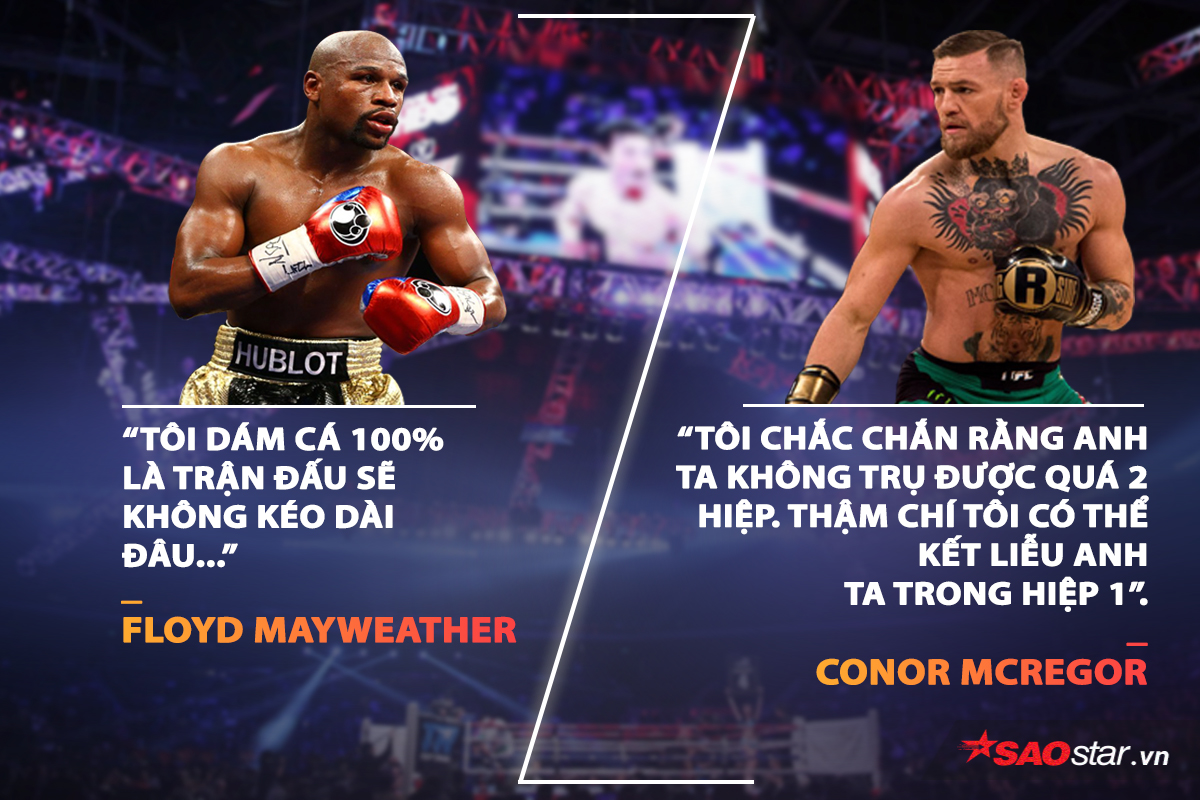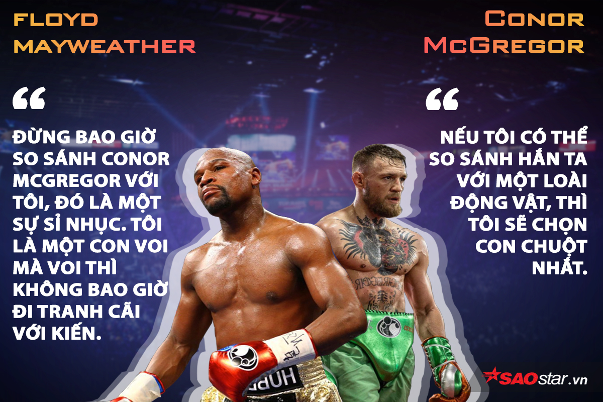 Khẩu chiến trước trận đấu được coi là một “nét đẹp” của các bộ môn võ thuật đối kháng nói chung và quyền anh nói riêng. Và với một trận đấu tâm điểm như “Trận đấu triệu đô” này, thì những màn đã kích đối phương trước giờ G càng được khán giả mong chờ. Và không phụ lòng người hâm mộ, Floyd Mayweather và Conor McGregor, những người vốn nổi tiếng không chỉ đánh giỏi mà nói cũng hay, đã có những màn công kích nhau vô cùng hấp dẫn. Cùng xem qua một số màn khẩu chiến “nảy lửa” của võ sĩ huyền thoại này nhé: