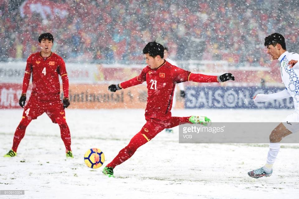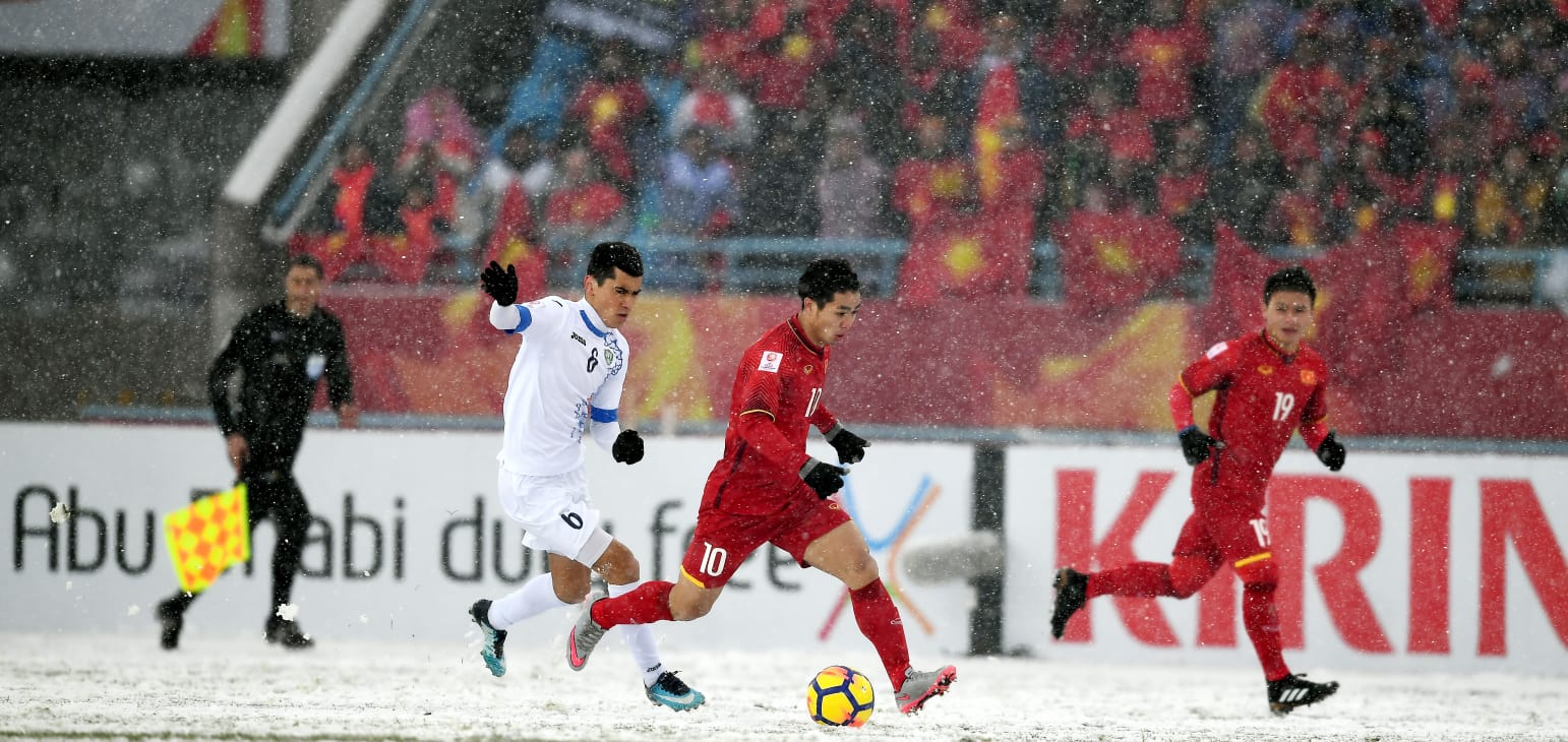 Các cầu thủ của đội tuyển U23 Việt Nam vừa trải qua một trận chung kết kỳ lạ khi phải thi đấu trong điều kiện thời tiết khắc nghiệt, trên mặt sân đầy tuyết ở Thường Châu (Trung Quốc), thời gian nghỉ giải lao kéo dài bằng cả một hiệp đấu.