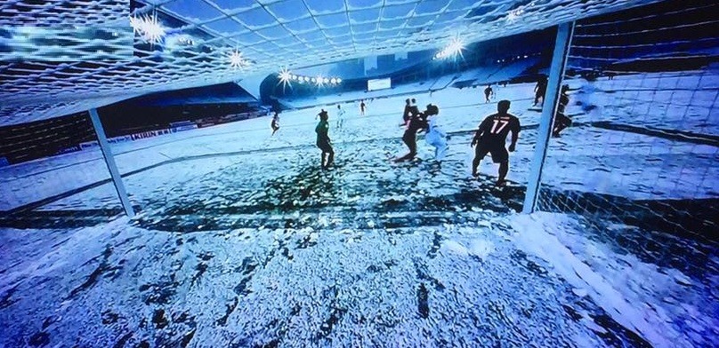 Trận đấu diễn ra dưới trời mưa tuyết. Ảnh: FOX Sports Aisa