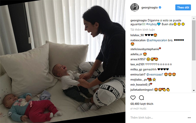Còn trong thời gian chờ đợi cho tới ngày đặc biệt đó, Georgina tiếp tục tạo ấn tượng với người hâm mộ trên mạng xã hội, nhưng lần này không phải qua vẻ đẹp nghiêng nước nghiêng thành, mà bằng vẻ đẹp của tình mẫu tử, của người mẹ biết cách dạy dỗ và chăm lo cho các con của người yêu như chính mẹ ruột của chúng.