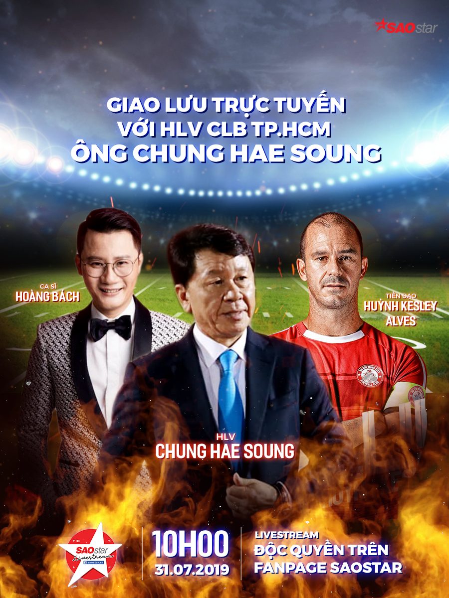 HLV Chung Hae Soung (CLB TP.HCM), tiền đạo Huỳnh Kesley Alves và ca sĩ Hoàng Bách sẽ có buổi giao lưu trực tuyến trên Saostar.