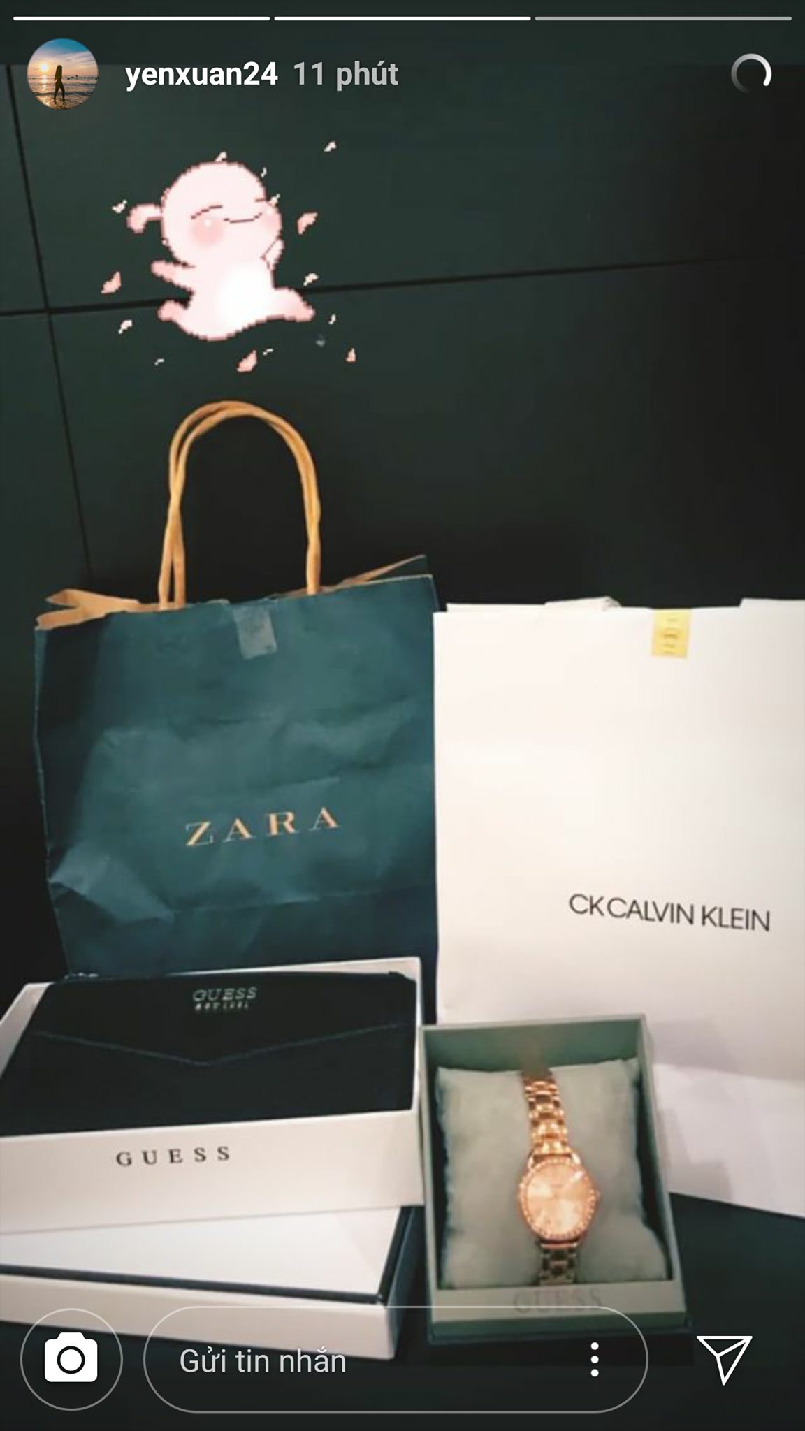 Chưa dừng lại ở đó, kỳ nghỉ dài ngày ngọt ngào của Yến Xuân bên Văn Lâm còn được chàng thủ môn dẫn đi mua sắm quần áo, đồng hồ, ví, phụ kiện… khiến bao fan hâm mộ của Lâm Tây ghen tị vô cùng. Tưởng rằng yêu xa thì sẽ khó khăn cách trở, nhưng có vẻ khoảng cách địa lý cũng chẳng thể ngăn Yến Xuân tìm đến bạn trai.