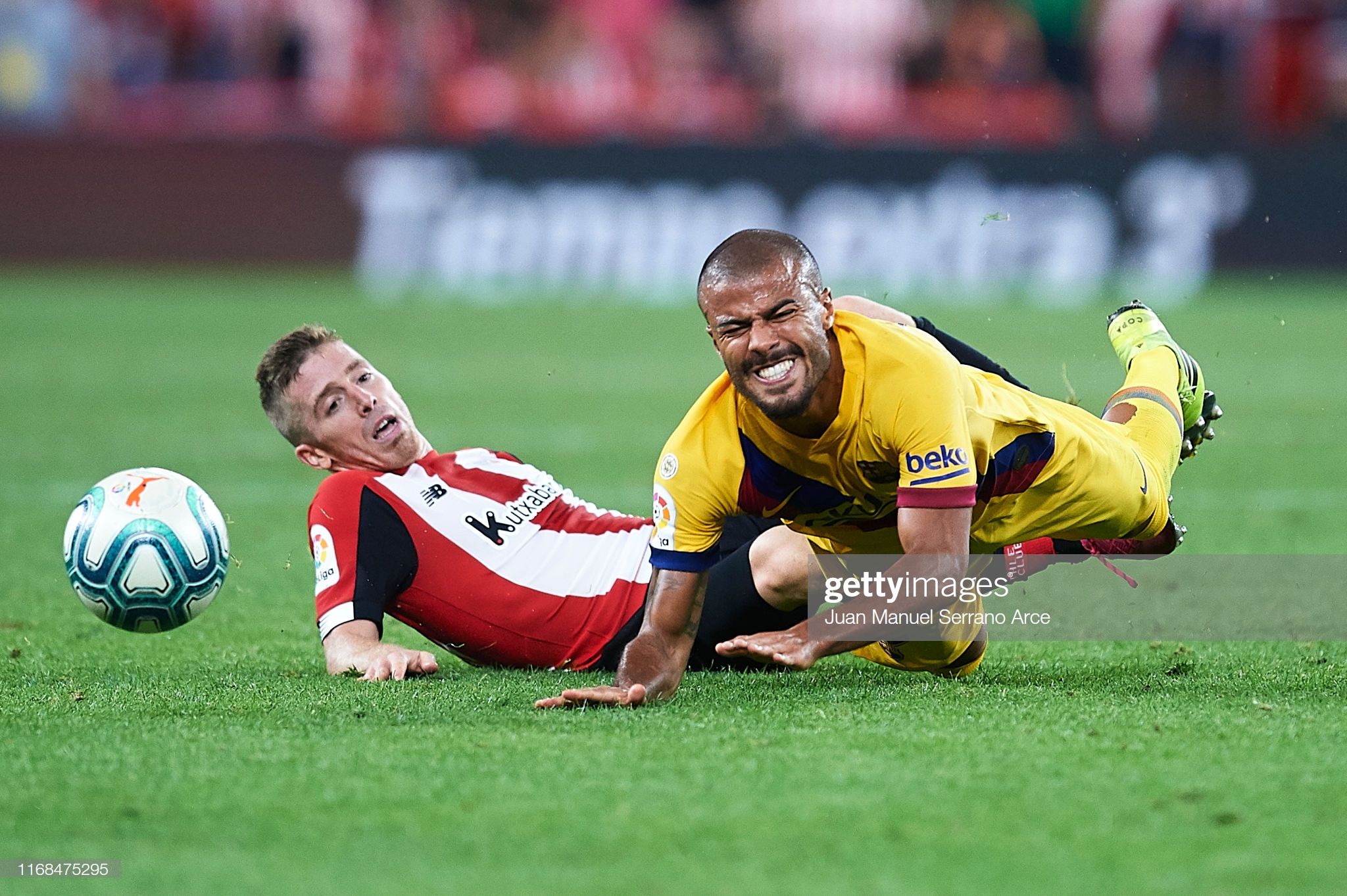Sau đó ở phút 44, tiền vệ người Brazil Rafinha đi bóng bên cánh phải rồi tung cú sút rất đẹp bằng chân trái nhưng bóng lại khẽ chạm vào tay thủ môn Unai Simon rồi dội xà ngang.