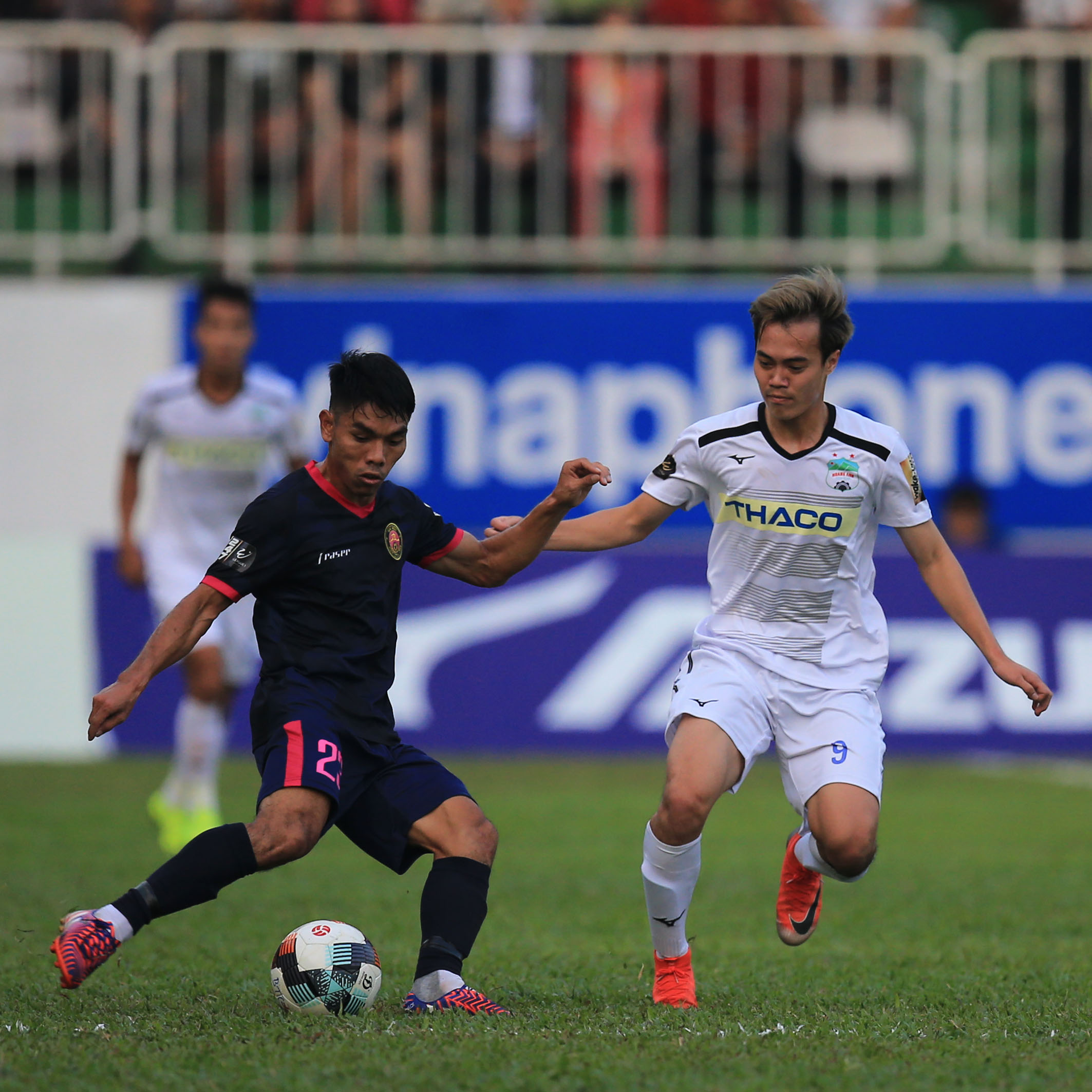 Có 1 bàn làm vốn, HAGL càng chơi càng tự tin. Họ chủ động pressing ngay trên phần sân của Sài Gòn, khiến cho đội khách gặp khó trong việc triển khai lối chơi.