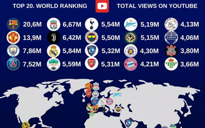 Trong top 20 CLB có lượng theo dõi nhiều nhất thế giới trên Youtube trong tháng 2/2019, HAGL đứng vị trí thứ 8, “ngồi chung mâm” với hàng loạt đội bóng lớn trong top 10 là Barcelona, M.U, Man City, PSG, Liverpool, Juventus và Real Madrid.