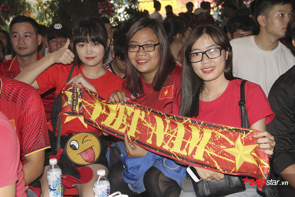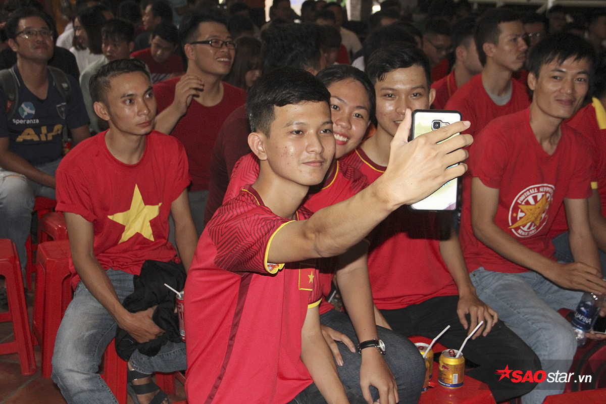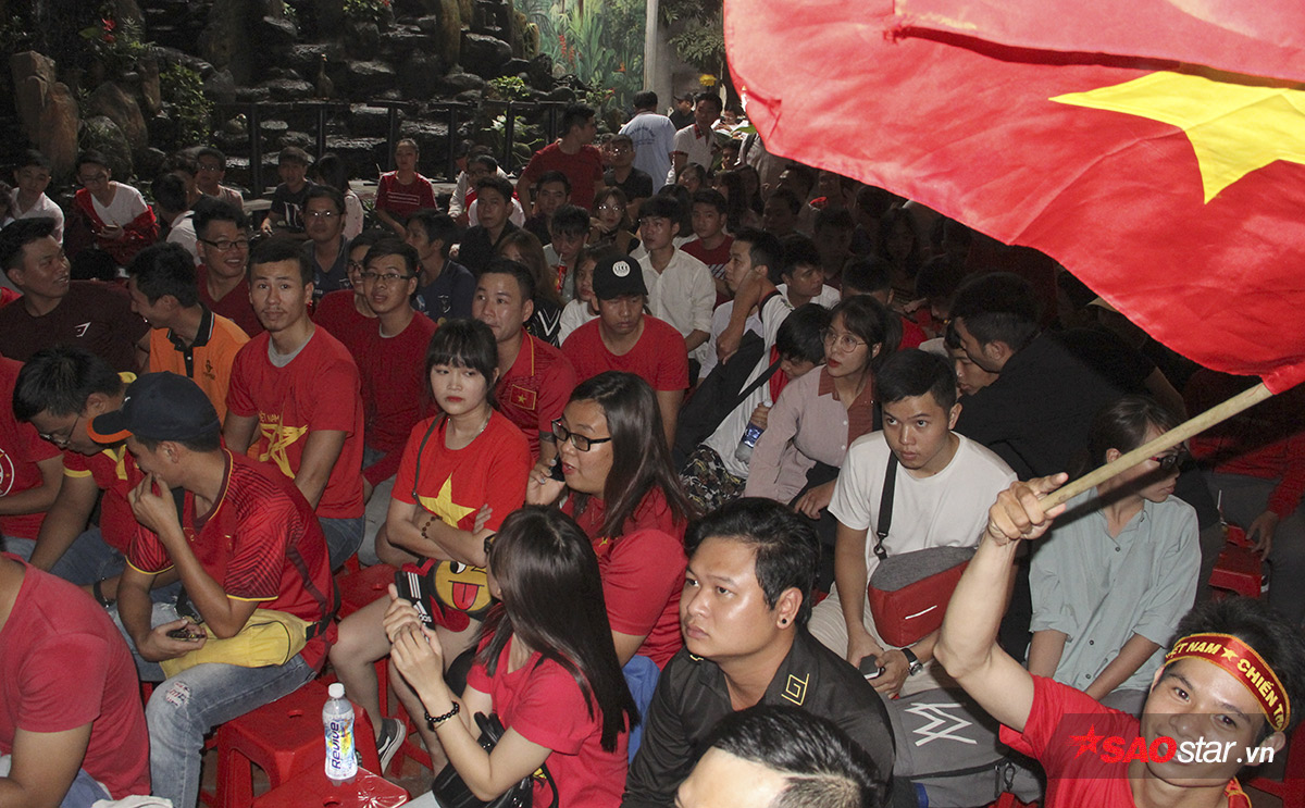 Khắp các nẻo đường tại TP.HCM, không khí chuẩn bị của người hâm mộ vui cùng nhộn nhịp và sôi nổi. Đặc biệt, ở một quán cafe tại Quận 10 (TP.HCM), nơi tập trung của các CĐV bóng đá Việt càng hồ hởi hơn. Cờ đỏ sao vàng, băng rôn, trống kèn…nhộn nhịp phủ kín cả khu vực off.