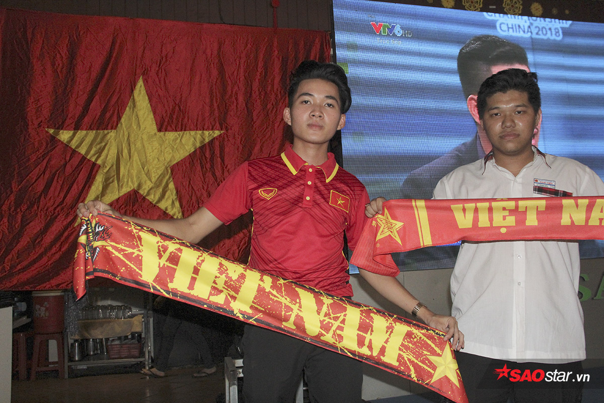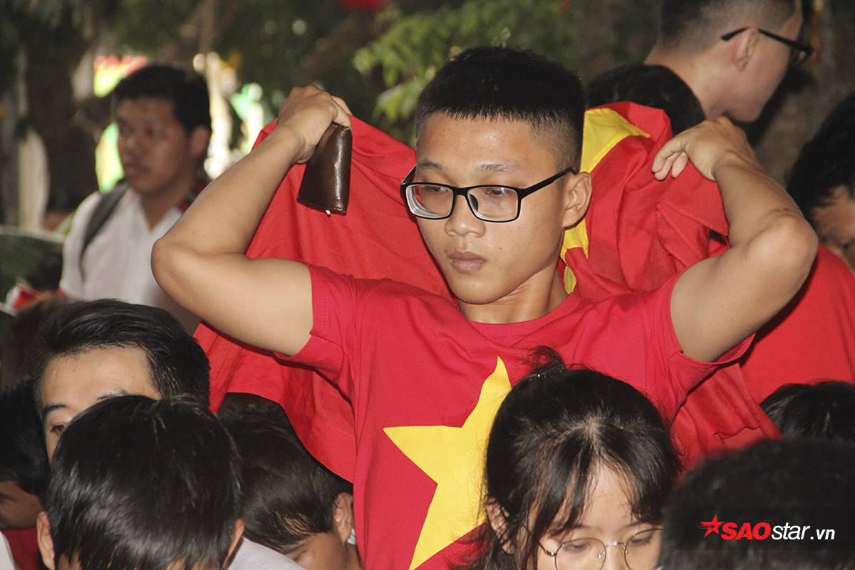 Trong số này, có hai cậu học sinh còn mặc nguyên đồng phục lớp 12 len lỏi giữa những CĐV cuồng nhiệt. Được biết, Minh Hiếu và Văn Quốc (tên 2 cậu học sinh) đã nghỉ học vài tiết buổi chiều để có thể đi xem và cổ vũ U23 Việt Nam. Và ngạc nhiên thay, phụ huynh hai cậu đều đồng ý .