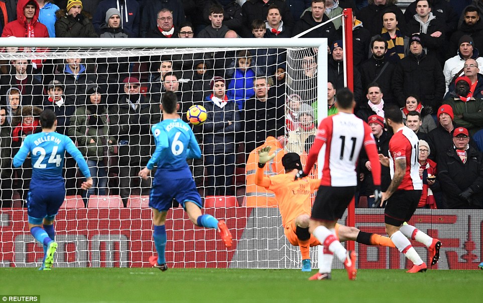 Hưng phấn sau bàn mở tỉ số, Southampton hoàn toàn làm chủ thế trận. Khung thành Petr Cech liên tục đặt trong trạng thái báo động trước các tình huống hãm thành đa dạng của đội chủ nhà.