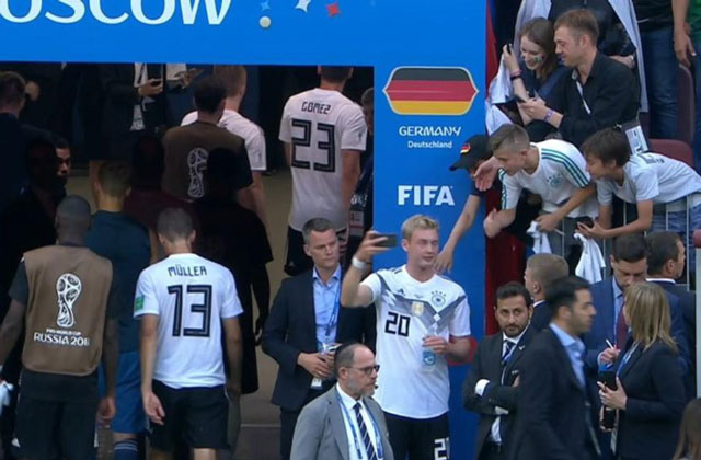 Do đó, sau trận đấu này, rất nhiều cầu thủ, BHL cùng CĐV Đức tỏ ra cực kỳ buồn bã. Thế nhưng, tiền đạo trẻ Julian Brandt lại có phản ứng hoàn toàn ngược lại với đồng đội khi cười “toe toét” và thoải mái chụp ảnh kỷ niệm với một số fan hâm mộ.