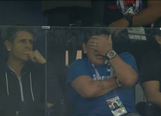 Thế nhưng, màn cổ vũ của Maradona có vẻ không mang tới may mắn cho Argentina khi họ bị Croatia đánh bại với tỷ số 3-0. Qua đó đánh mất quyền tự quyết trong việc giành vé vào vòng 1/8 World Cup 2018. Đến lúc này, “Cậu bé vàng” mới cảm thấy thất vọng khi che kín mặt, không dám nhìn trận đấu.