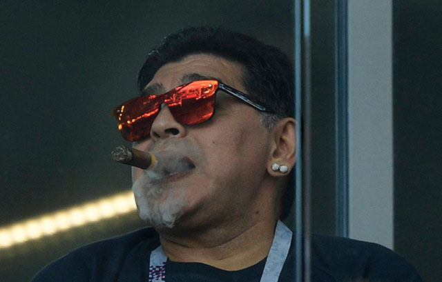 Trước đó, Maradona đã bị chỉ trích rất nhiều vì hành vi coi thường lệnh cấm của BTC World Cup 2018 khi thản nhiên hút xì gà trên khán đài.