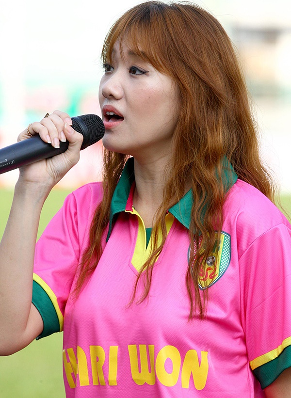 Hari Won từng hát ở V.League nên khá quen thuộc với người hâm mộ bóng đá.