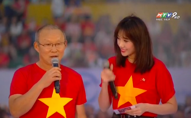 Còn nhớ buổi lễ mừng công U23 Việt Nam tại sân Thống Nhất hồi đầu năm nay, ca sỹ Hari Won đã trở thành “người đặc biệt” khi xuất hiện trong viên trò người dẫn chương trình kiêm phiên dịch cho HLV Park Hang Seo.