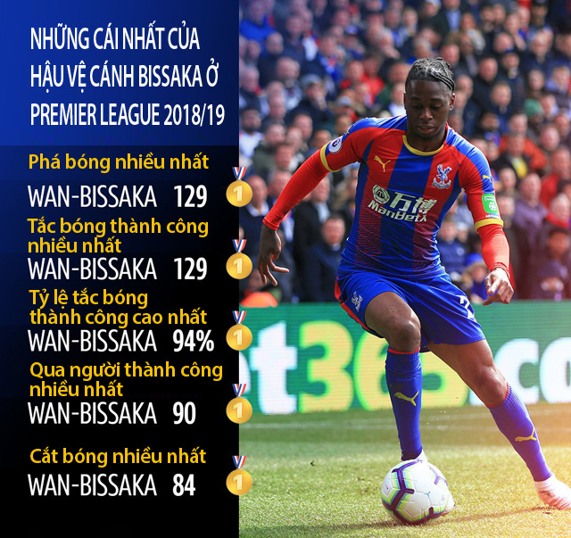 Ngoài ra, Wan-Bissaka được đánh giá là không có đối thủ ở khả năng phòng ngự 2 hành làng cánh. Cầu thủ này không chỉ phá bóng nhiều nhất, mà anh còn vô đối về số lần tắc bóng thành công, qua người và cắt bóng.