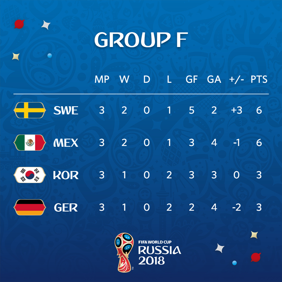 Tối qua, Hàn Quốc đã gây sốc khi đánh bại ĐKVĐ thế giới Đức 2-0 và khiến đối thủ bị loại ngay sau vòng bảng. Tuy vậy, 3 điểm có được không đủ giúp Hàn Quốc đi tiếp bởi lẽ ở trận đấu cùng giờ, Thụy Điển đã hạ Mexico 3-0.