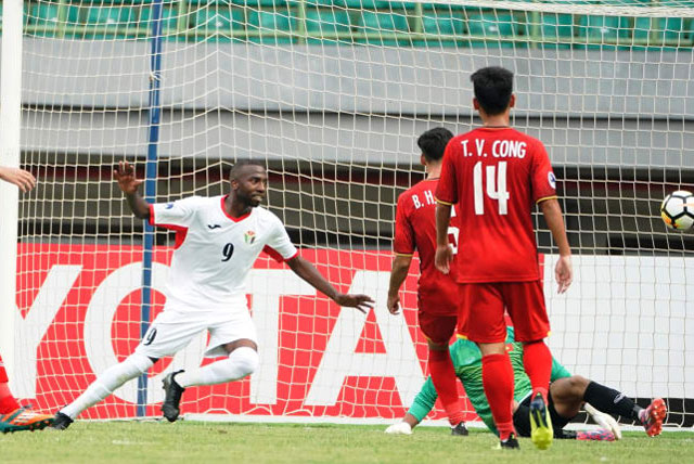 Mohammad Atieh ghi bàn gỡ hòa 1-1 cho U19 Jordan.