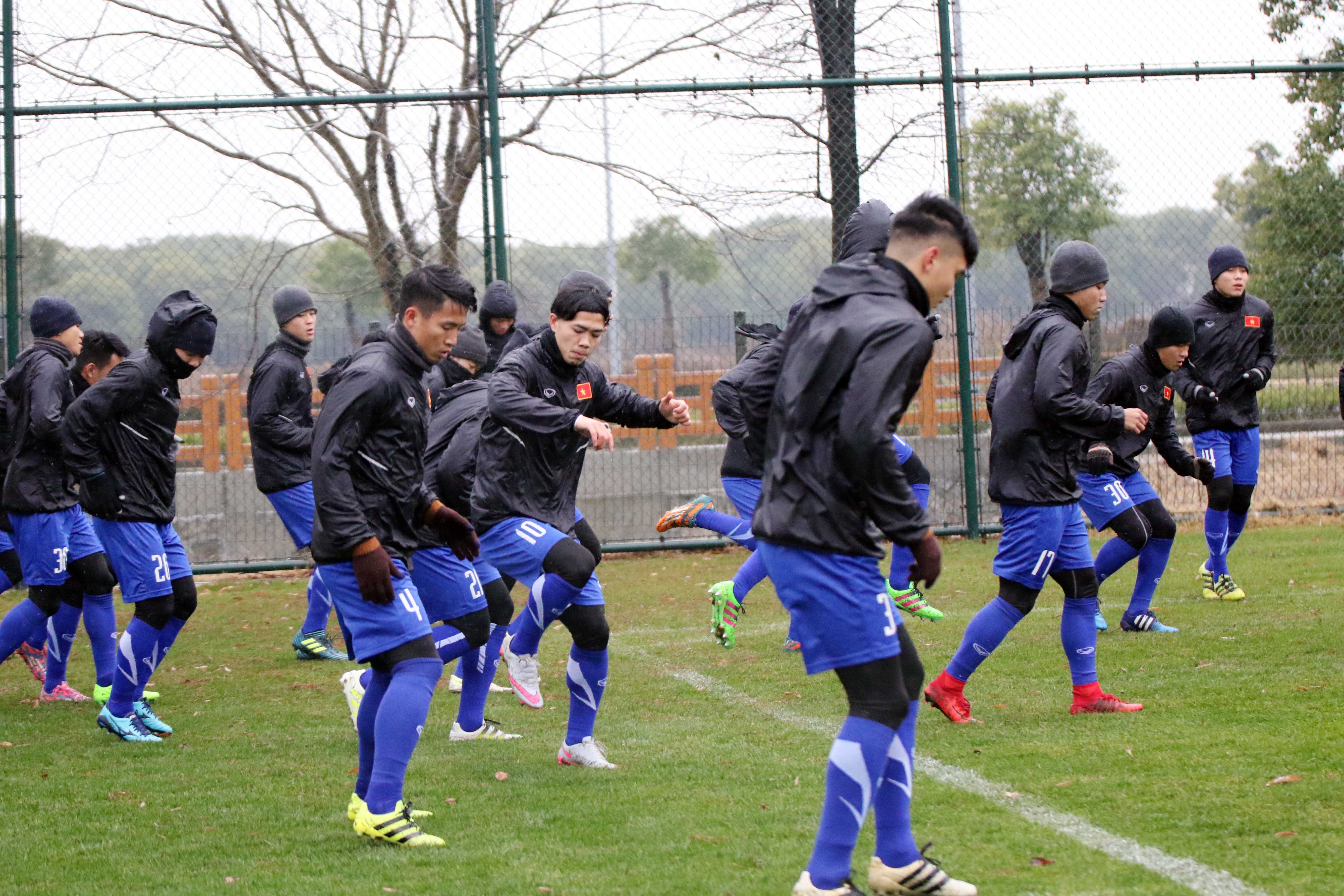 Hiện tại, U23 Việt Nam đã có mặt ở Trung Quốc. Thầy trò HLV Park Hang Seo tập trên sân Trung tâm thể thao Kim Sơn - Thượng Hải. Công Phượng đã trở lại tập luyện sau chấn thương tại Việt Nam. Thời tiết bất thường nên dao động nhiệt độ từ 10-12 độ C.