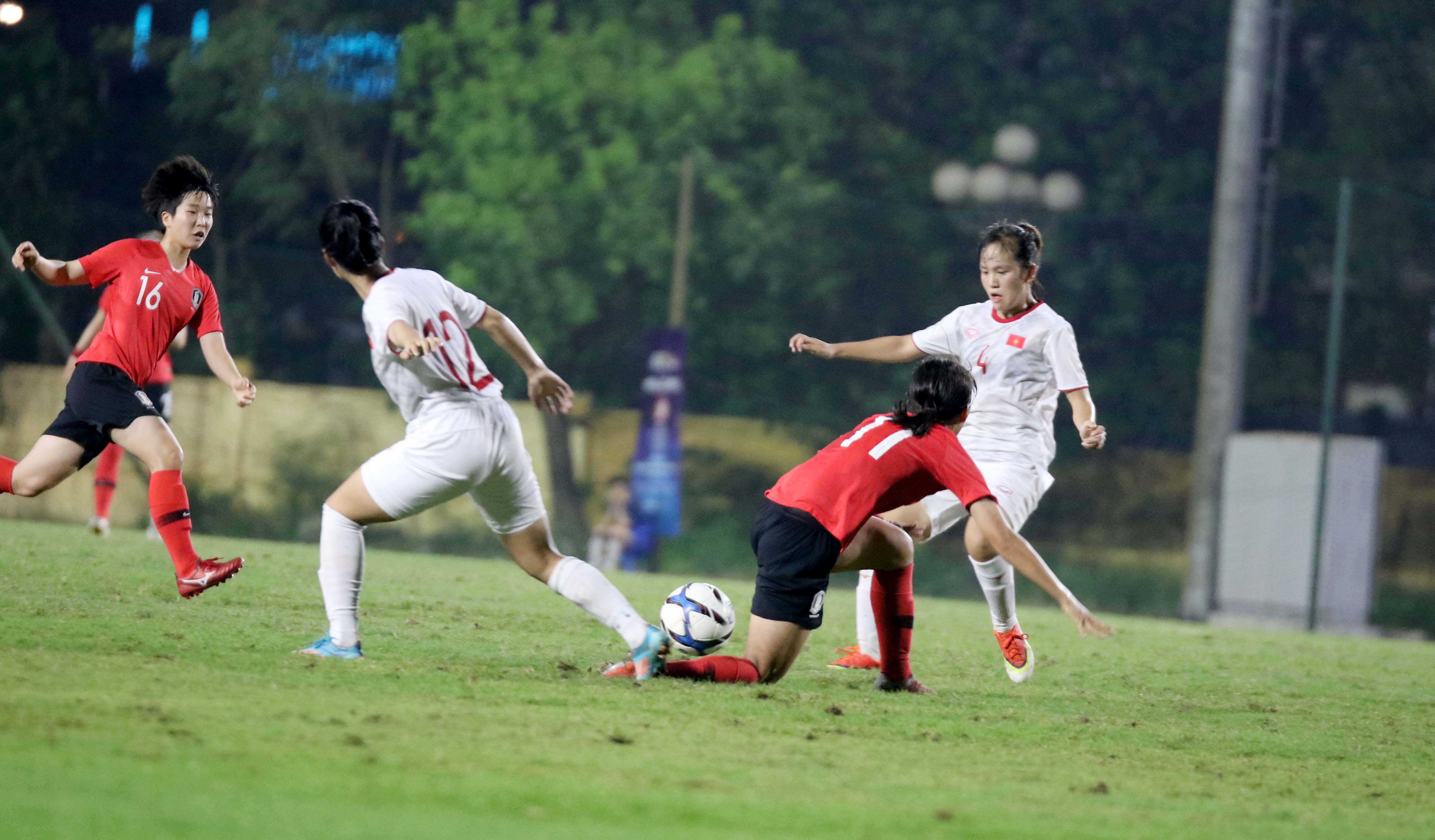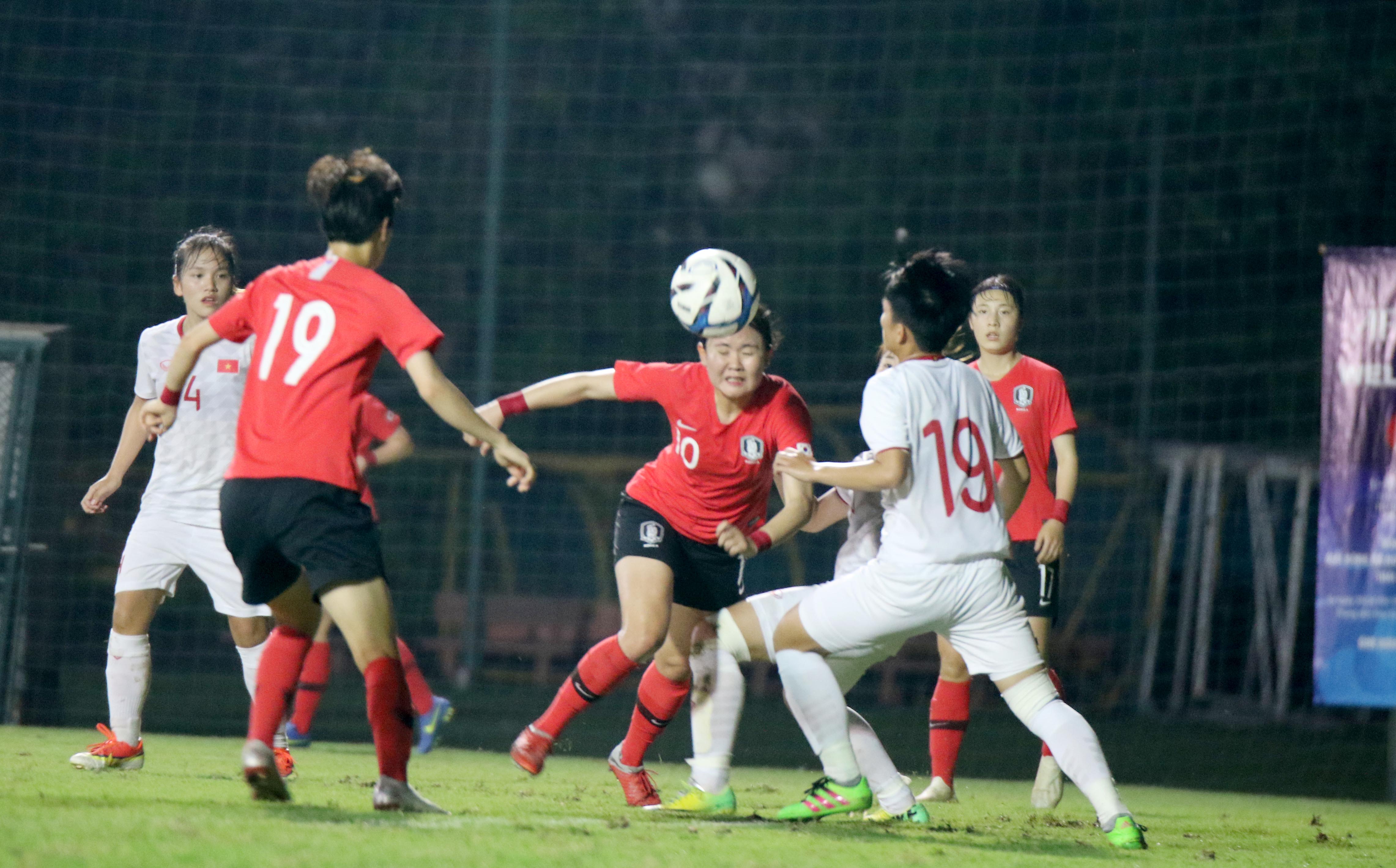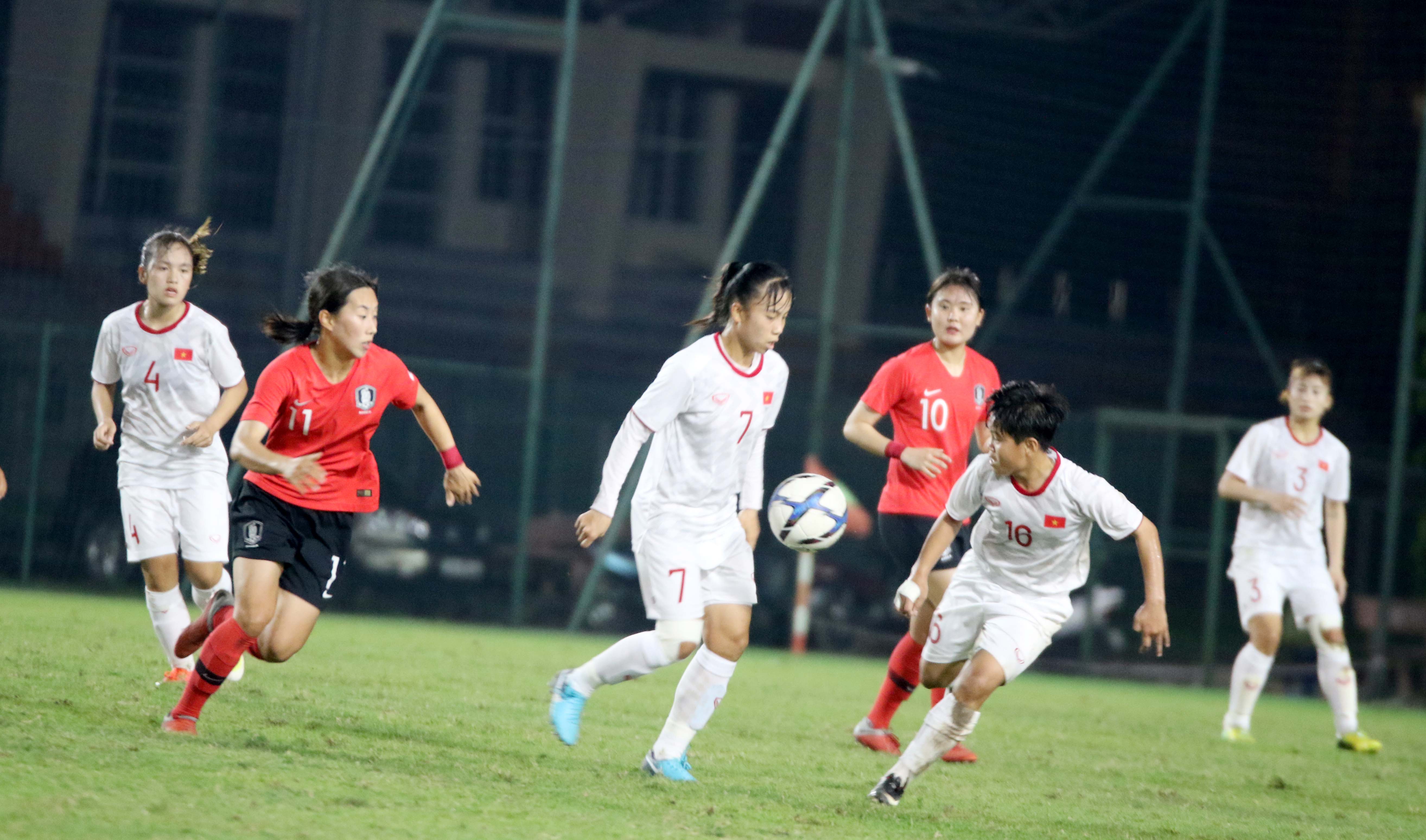 Đối thủ của họ là U19 nữ Hàn Quốc chắc chắn đi tiếp sau 2 chiến thắng trước Lebanon và Iran trước đó.Ảnh:VFF