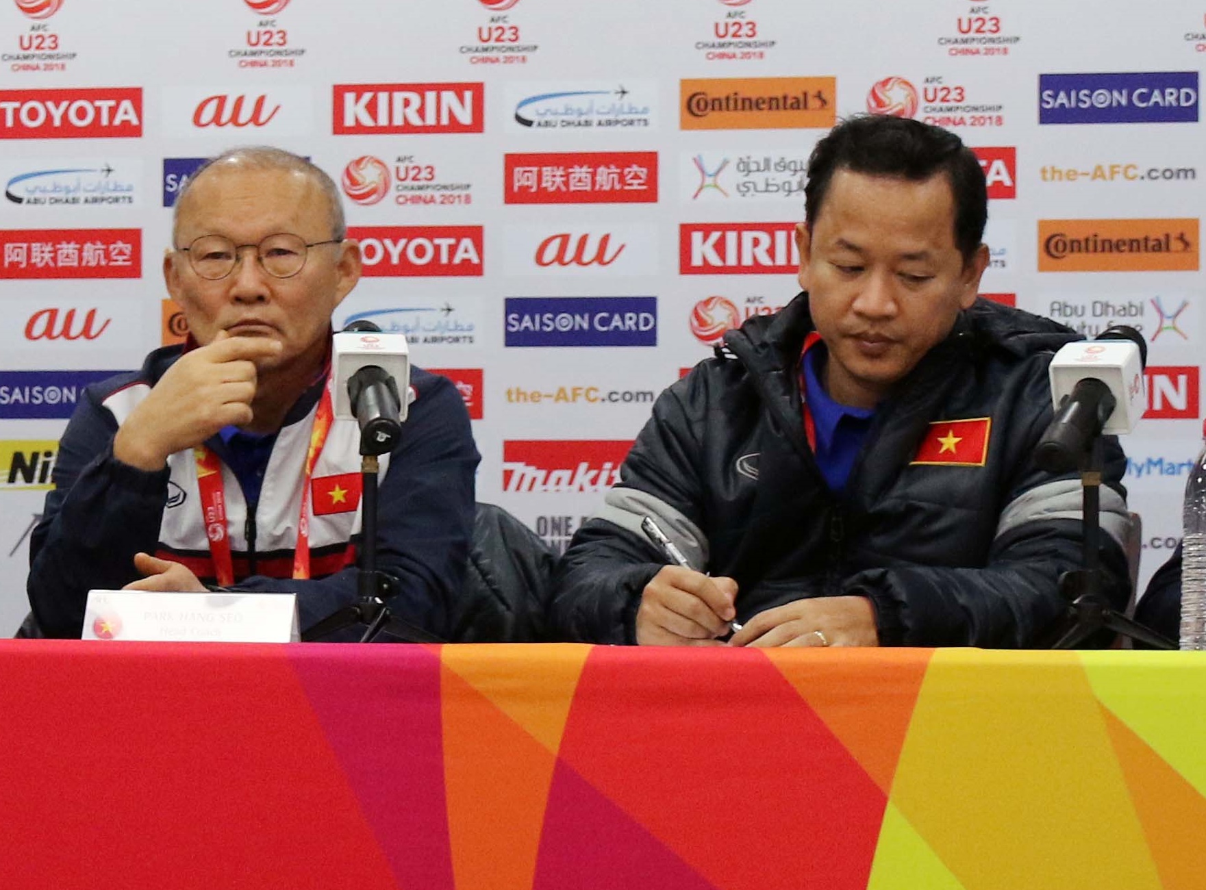 HLV Park Hang Seo (trái) tuyên bố U23 Việt Nam không ngán U23 Iraq. Ảnh: VFF