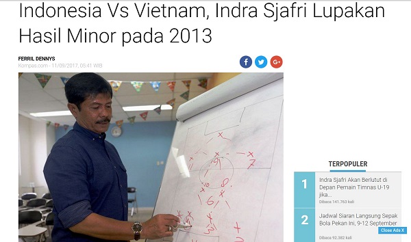 Trả lời phỏng vấn tờ Bola (Indonesia) HLV Indra Sjafri nói: “Cách đây 4 năm, U19 Indonesia từng đánh bại Việt Nam trong một trận chung kết lịch sử. So với thời điểm đó, U18 Indonesia ở thời điểm hiện tại còn mạnh mẽ hơn. Tất nhiên, việc sống với quá khứ sẽ là điều không nên cho chúng ta. Toàn đội cần nghĩ tới tương lai bởi chúng ta chính là hy vọng của bóng đá Indonesia. Chúng ta cần hướng tới những chiến thắng mà trước mắt chính là việc đánh bại Việt Nam”.