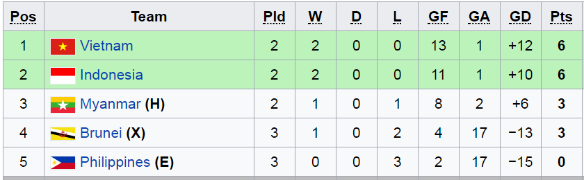 Bảng xếp hạng bảng B U18 Đông Nam Á: