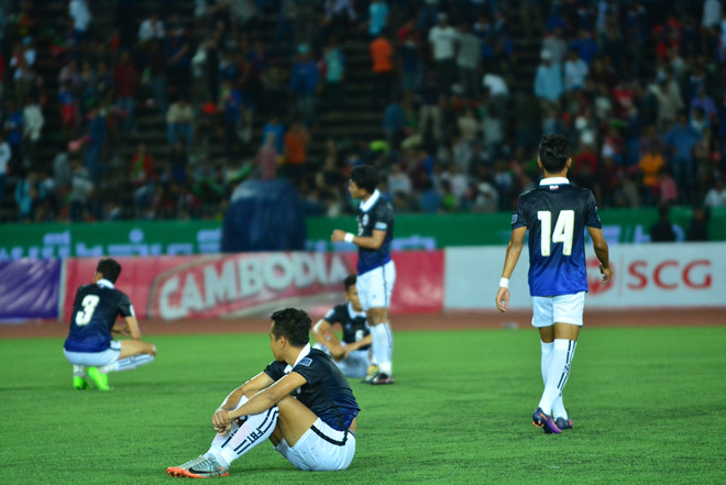 Các cầu thủ Campuchia để thua sát nút 1-2 trước Việt Nam. Ảnh: Nguyên Trí.