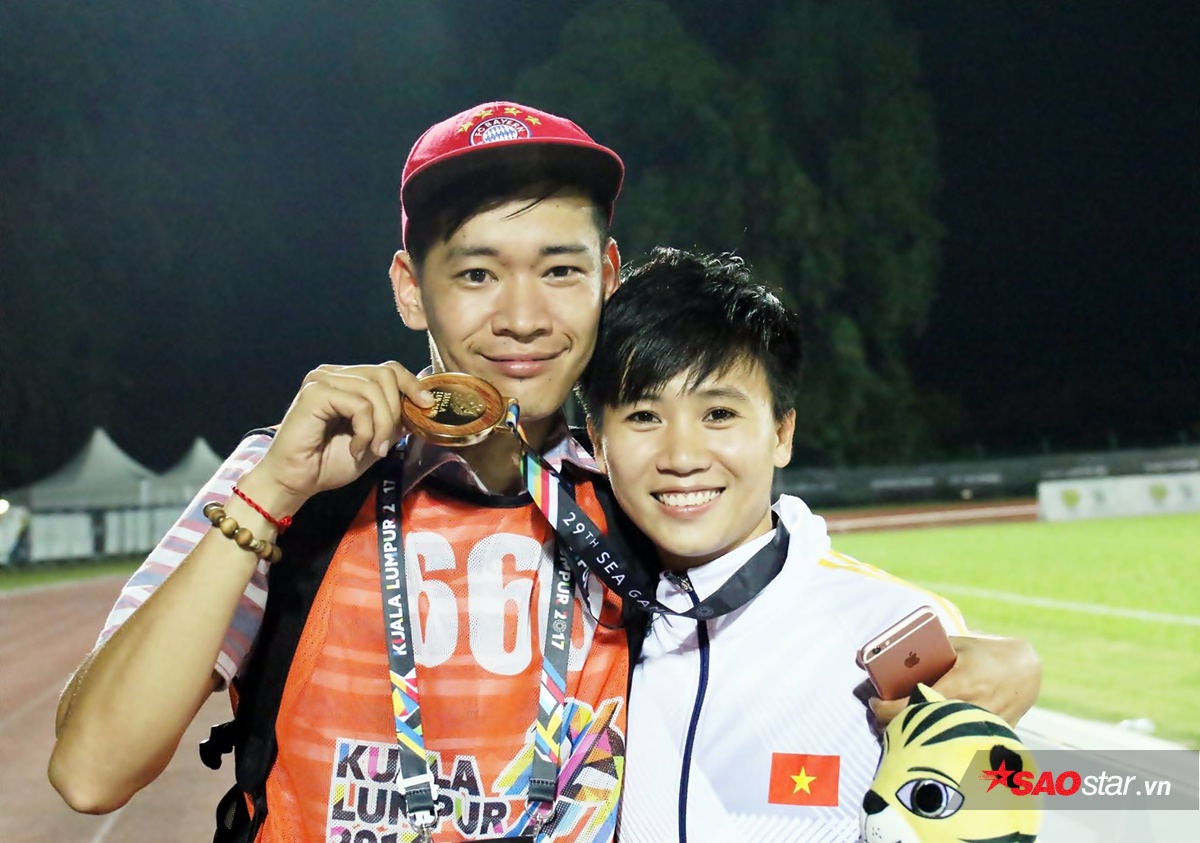 Tuyết Dung chia sẻ niềm vui giành HCV SEA Games 29 với phóng viên Saostar (bìa trái)