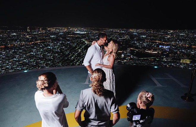 Sau gần 2 năm chung sống như vợ chồng với Kate Wright và bị các con riêng giục làm đám cưới, Rio Ferdinand đã táo bạo cầu hôn người đẹp này trên nóc một tòa nhà chọc trời ở Abu Dhabi (UAE).