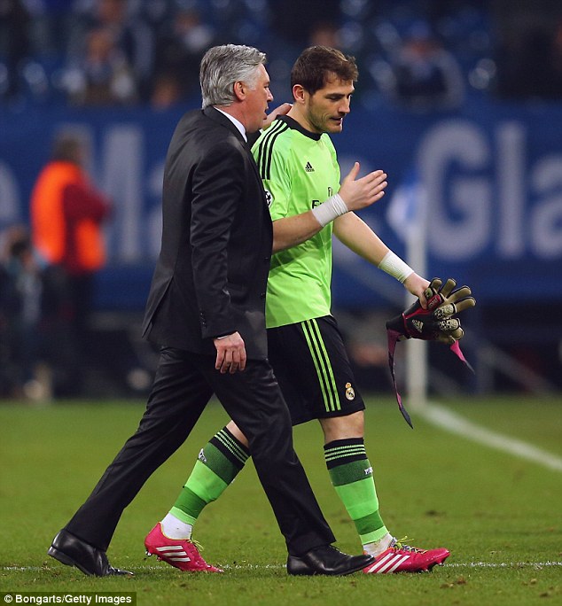 Carlo Ancelotti được chọn làm người kế nhiệm Mourinho và ngay lập tức ông quyết định để Casillas là người bắt chính tại Cúp nhà Vua cũng như Champions League. Người gác đền ấy tiếp tục ra sân với chiếc băng đội trưởng của Los Blancos trong hành trình giành hai danh hiệu này vào năm 2014. Anh trở thành thủ môn đầu tiên không để thủng lưới bất cứ một bàn thua nào cho đến tận trận chung kết Cúp nhà Vua - nơi Real Madrid đánh bại Barcelona 2-1 ở Mestalla - trước khi làm nên lịch sử còn to lớn hơn nữa ở đấu trường châu Âu.