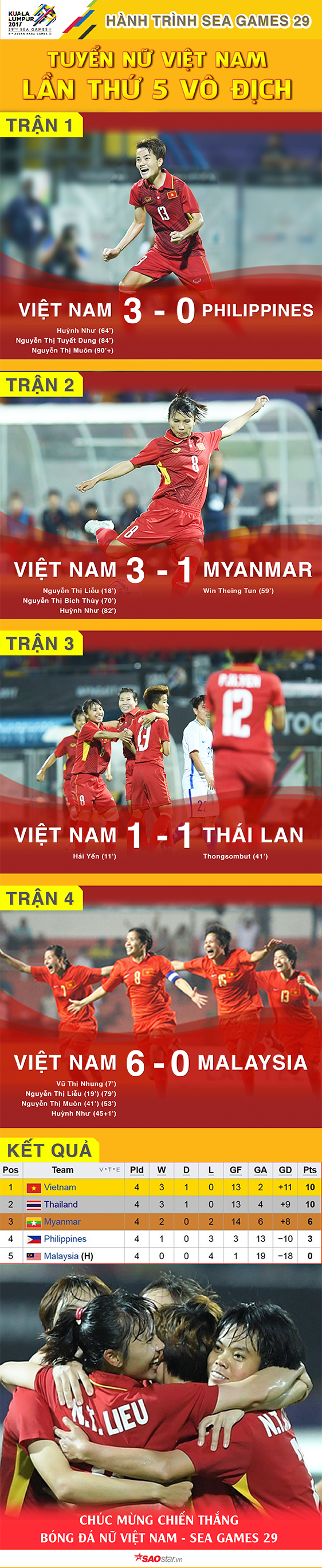 [Infographic] Hành trình “săn” vàng ngoạn mục của tuyển nữ Việt Nam Wind Lê 25/08/2017 - 00:29 (GMT+7) Tuyển nữ Việt Nam đã giành lấy chiếc HCV SEA Games 29 với một kịch bản như phim bom tấn của Hollywood khi ngoạn mục vượt qua Thái Lan suýt sao bằng chỉ số phụ. Trận thắng 6-0 của nữ VN trước Malaysia. Chia sẻ Bài viếtWind Lê #Hashtag #SEA GAMES 29 #NỮ VIỆT NAM VÔ ĐỊCH #TUYỂN NỮ VÔ ĐỊCH SEA GAMES