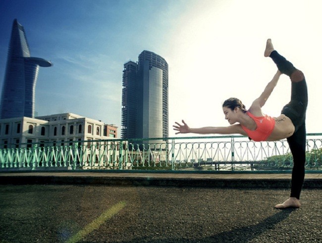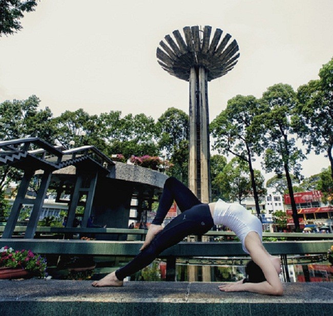 Thậm chí người đẹp mê yoga đến mức có thể thản nhiên thực hiện một động tác của bộ môn này ở bất kỳ đâu, dù là ngay trên đường phố TP.HCM.