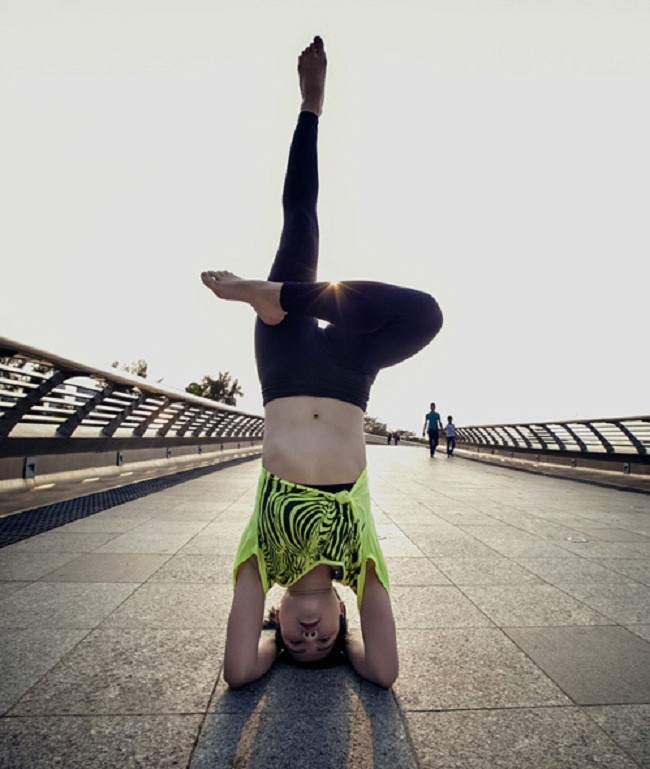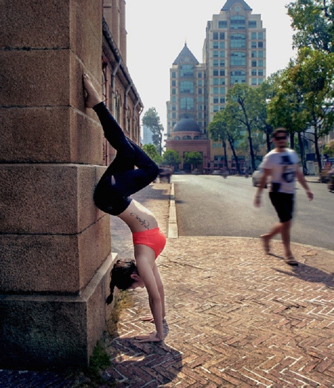 Cô nàng có khả năng trồng chuối mà không cần điểm tựa.