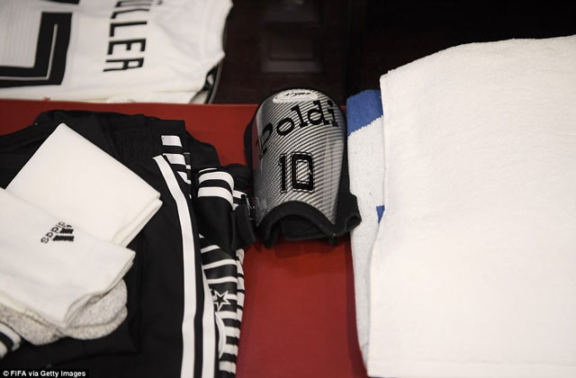 Phòng thay đồ tiêu chuẩn của các đội tuyển tại World Cup 2018 đều có sẵn nước uống và đồ ăn nhẹ.