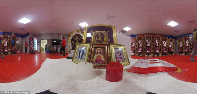ĐT Peru cũng có bàn cầu nguyện trong phòng thay đồ trước trận ra quân gặp Đan Mạch hôm 16/6.