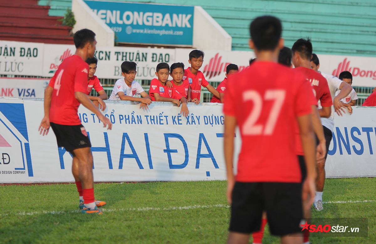 Chiều ngày 25/11, CLB Long An thi đấu trận cuối cùng tại V-League 2017. Sau trận đấu này, đội bóng xứ gạch sẽ chính thức xuống hạng 1. Trước trận, khá nhiều đàn em tại đội bóng trầm ngâm tập trung nhìn đàn anh khởi động. Một điều các trận đấu thông thường của đội hiếm khi nhìn thấy.