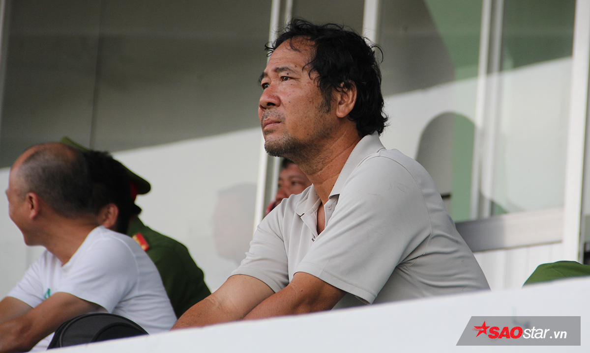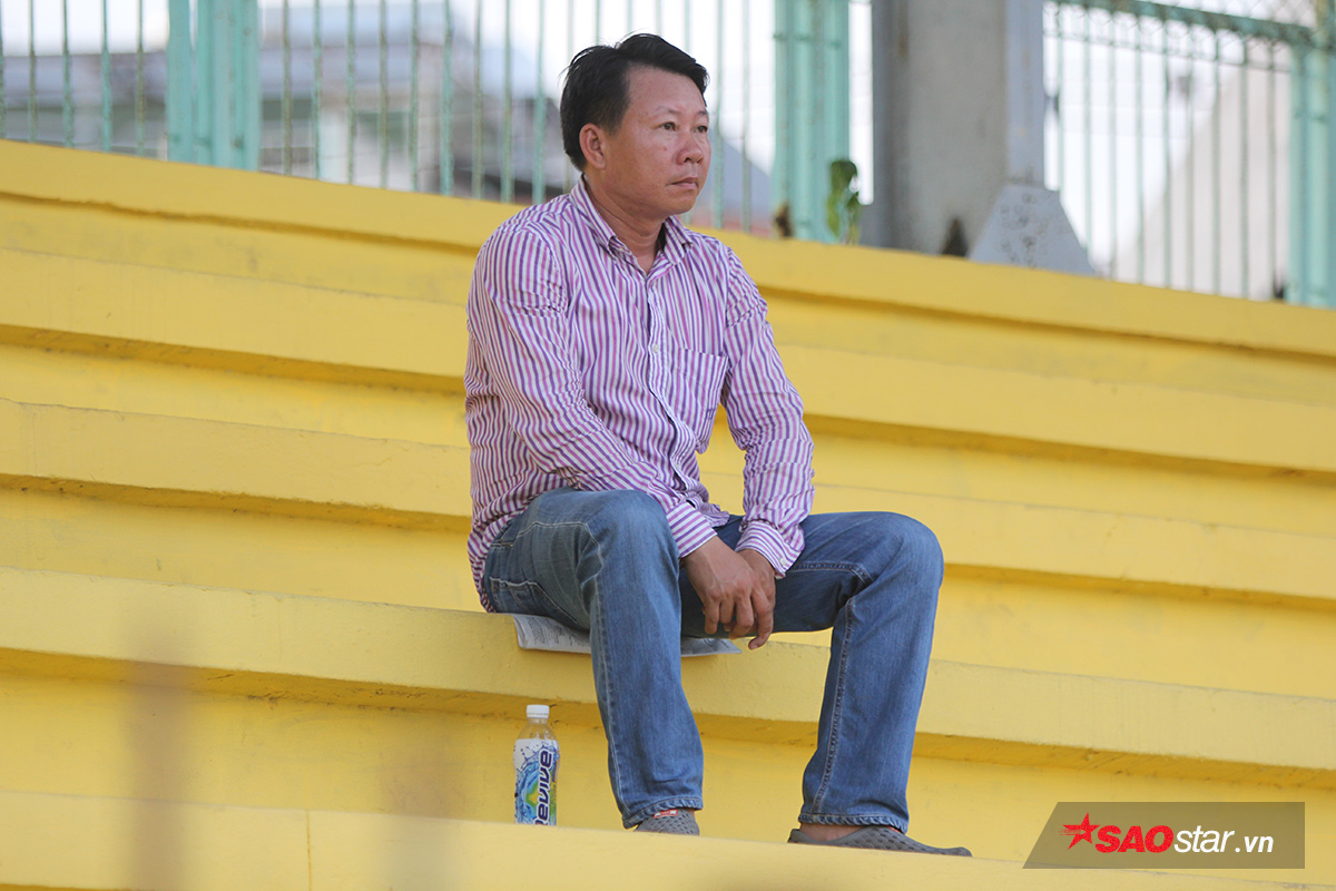 Cựu HLV Long An - ông Ngô Quang Sang lặng lẽ ngồi ở một góc khán đài dành cho khán giả nhìn các học trò thi đấu.