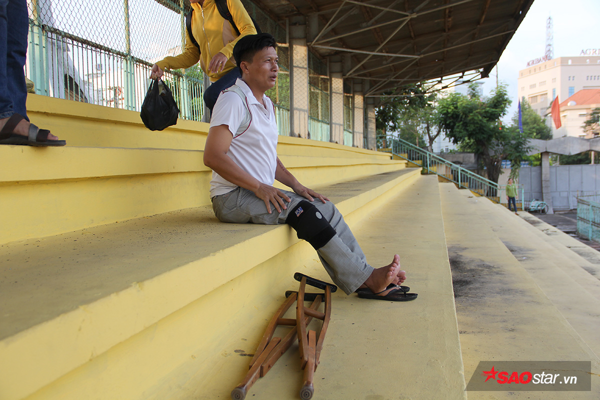 Vị CĐV này (xin được giấu tên) dù bị tai nạn xe nhưng vẫn chống nạng đến sân xem thi đấu. Anh cho biết mình luôn theo dõi đội bóng từ thời thầy phù thủy Calisto còn dẫn dắt Long An. Anh hy vọng đội bóng sẽ tăng cường lực lượng ở mùa bóng sau để giành chức vô địch hạng 1.
