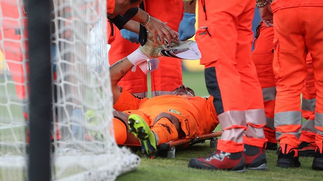 Thủ môn CLB Chievo bị ngất sau tình huống va chạm.